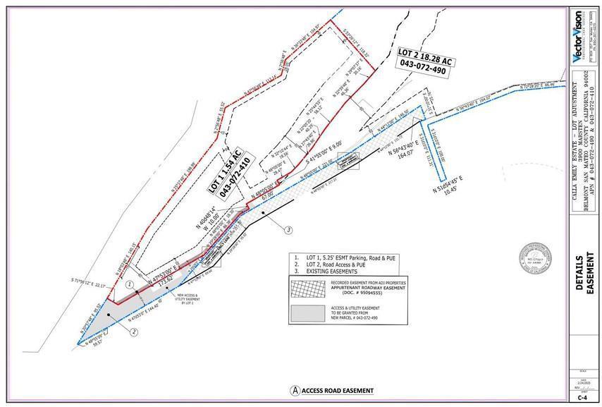 The seller is offering the front portion of the property for sale under ML82028983. This front area is ideally positioned closest to the paved road cul-de-sac and existing utilities. In May 2025, sellers' civil engineer and architect to prepared a proposed lot line adjustment and subdivision plan for the development of two luxury residences, each approximately 4,500 square feet. The lot line adjustment would create two amazing lots one at approx. 27,200 sf and the second at approx. 40,000sf , the larger lot has views of the SF bay and city lights. Build a luxury home for yourself and the second for resale! Preliminary plans for the proposed lot split and building design plans are available for to view. Per the seller, the anticipated lot line adjustment process could take approximately two to three months to complete. The new owner would be fully responsible for obtaining any/all applicable costs for submission, review, permit, building fees, reports and surveys. New owner may choose to proceed with the existing architectural plans or create their own custom home design. With much of the preliminary groundwork for the lot line adjustment is already completed, this opportunity could significantly accelerate the development timeline.