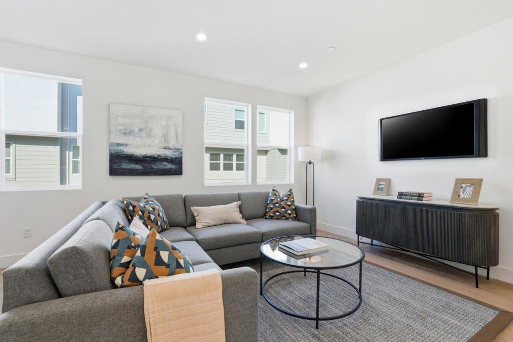 Towns Plan 2, available for quick move-in, offers 4 bedrooms, 3.5 bathrooms, and a 2-car side-by-side garage. The open-concept layout features a spacious kitchen with quartz countertops, a large island, Bosch appliances. A private deck extends the living space, perfect for relaxing outdoors. Engineered hardwood floors flow throughout main living areas, complemented by paint-grade shaker-style soft-close cabinetry and 4" LED recessed lighting. The first floor includes a bedroom with an en-suite bath, ideal for guests or a home office. The primary suite offers a generous walk-in closet, combining comfort and functionality. Solar panels enhance energy efficiency and are available for lease or purchase. City Village by SummerHill Homes features 404 elegant residences centered around a 2-acre public park with walking and biking trails, seating areas, and a community barbecue space. Ideally located near San Ramons City Walk neighborhood and within walking distance to City Centers restaurants, movie theater, and shops, the community offers exceptional convenience. Condo ownership. Close to schools, major employers, and public transit, with nearby attractions, Central Park, Canyon Lakes Golf Course, and Bridges Golf Club. Images shown depict another home; actual finishes may vary.