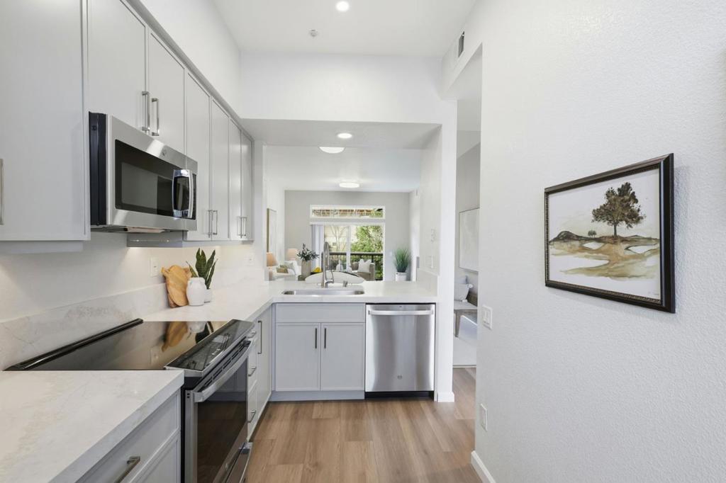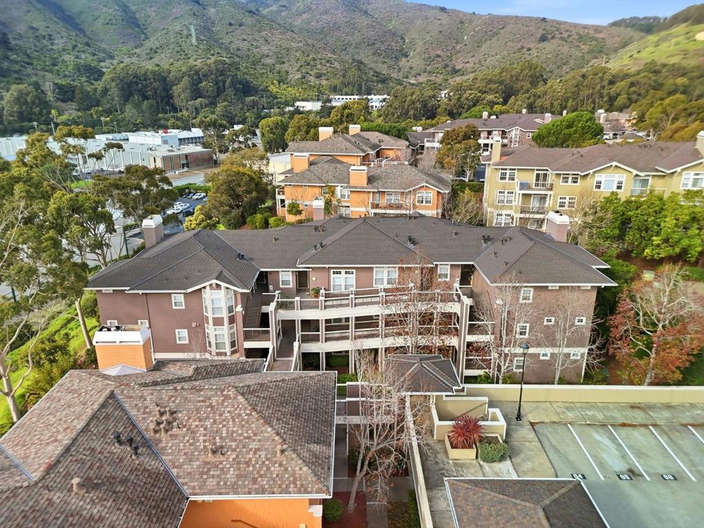Beautifully remodeled and offered for the first time since 1998, this 2-bedroom, 2-bath residence offers 1,242 square feet of light-filled living in one of Brisbane's most peaceful resort-style communities. Thoughtfully updated throughout, the home blends clean, modern design with its quiet hillside setting. The living room centers around a fireplace and opens to a private balcony with mountain views, creating a seamless indoor-outdoor connection. New flooring runs throughout, adding warmth and continuity. The kitchen features new cabinetry and a complete suite of new appliances, combining streamlined design with everyday functionality. Both bathrooms have been redesigned with new cabinetry, updated lighting and hardware, and large-format porcelain slab shower walls for a clean, modern finish. Positioned on the top floor, the home enjoys enhanced privacy and abundant natural light. Two parking spaces include one garage and one uncovered space. Set at the base of San Bruno Mountain, the community offers easy access to trails, parks, Highway 101, San Francisco, and SFO.