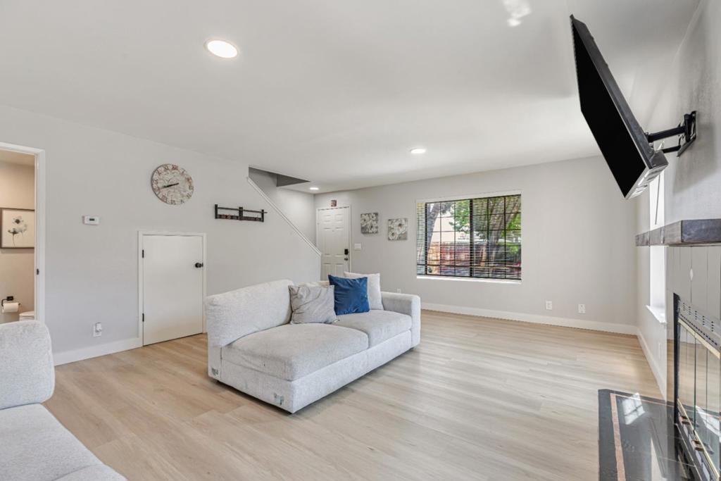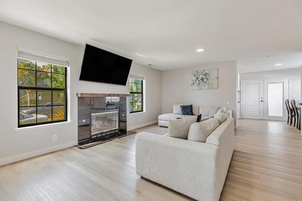 Welcome to your beautifully updated townhome located in the desirable gated community of Gibson Station, right in the heart of Hollister. This charming, standalone unit offers rare privacy with no shared walls, truly a hidden gem! Just minutes from schools, shopping, and major highways, the location couldn't be more convenient. Enter inside to find a fully renovated kitchen with sleek cabinetry, stainless steel appliances. The spacious primary bedroom upstairs features a walk-in closet and large windows that fill the room with natural light. Two additional bedrooms provide flexibility for guests or a home office. A detached two-car garage offers ample space for parking and storage. Community amenities include a clubhouse, playground, and a sparkling in-ground pool and spa ideal for relaxing or staying cool during summer. All of this comes at an excellent value, don't miss the opportunity to make this home yours!