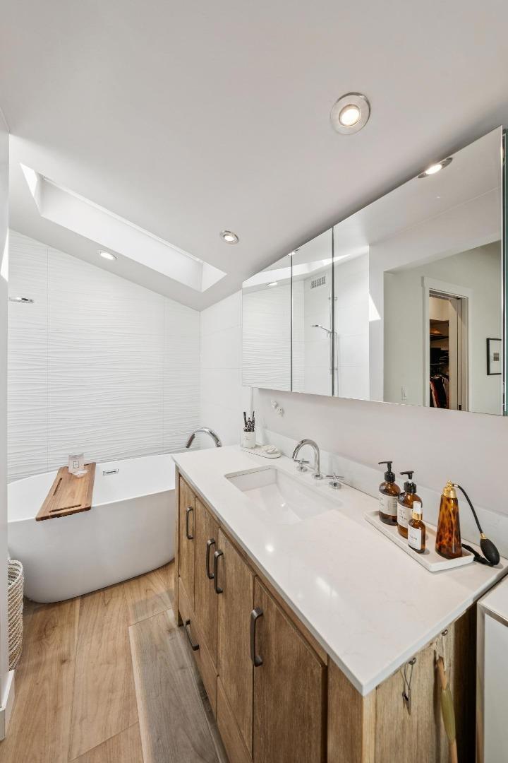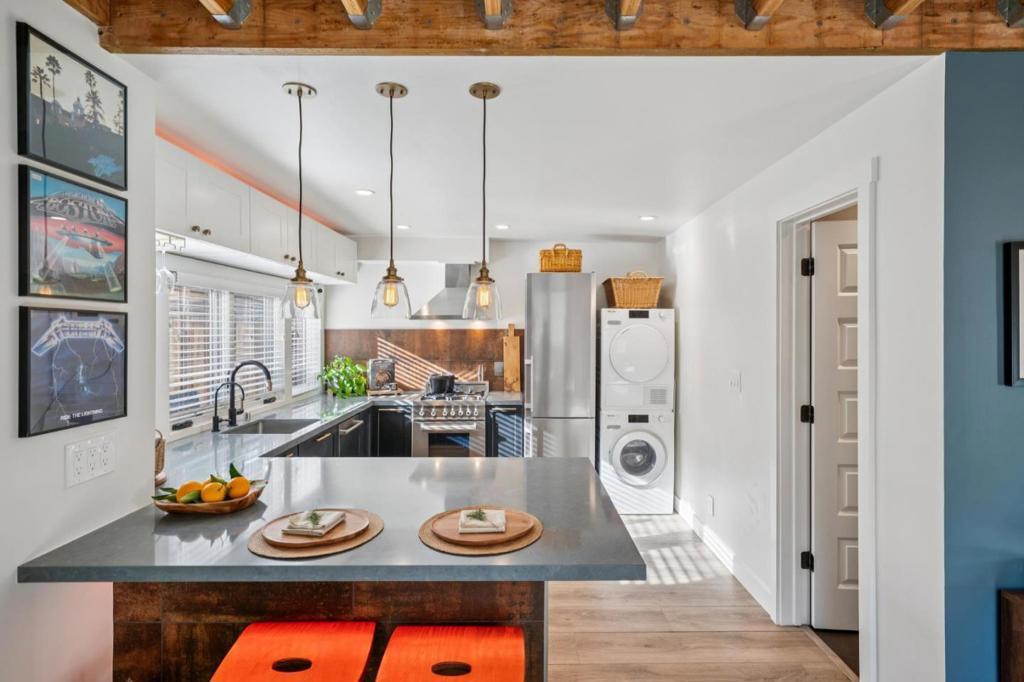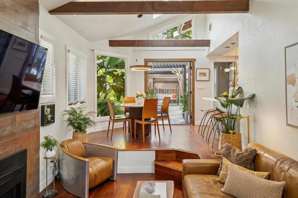 Discover elevated downtown living at 174 Villa Avenue in Los Gatos. This thoughtfully updated property delivers exceptional design and sustainable build for energy efficiency. A stroll-to-town lifestyle, exploring shops, dining, parks, and highly regarded schools. Recently remodeled house features a main residence w/ 2 bedrooms and 2 baths and an attached ADU offers 1 bedroom and 1.5 baths. Both boast high ceilings and skylit rooms, full gourmet kitchens w/ high-end appliances and walk-in pantry, hardwood flooring, designer Porcelanosa tiles and RH lighting throughout enhance the homes inviting, urban aesthetic ideal for both everyday living and entertaining. French doors lead onto serene patios surrounded by greenery perfect to enjoy your morning coffee or to entertain in an oasis-like setting. The upstairs primary suite offers a private spacious bedroom and light flooded lounging area, his & her walk-in closet and spectacular views of green hills. The attached ADU w/ its theater-grade soundproofing walls provides a private retreat for guests and family, or income potential, while the converted garage adds bonus living space perfect for a home office, studio or living space. Plush landscaping and fruit trees surround the property, creating an attractive low-maintenance setting.