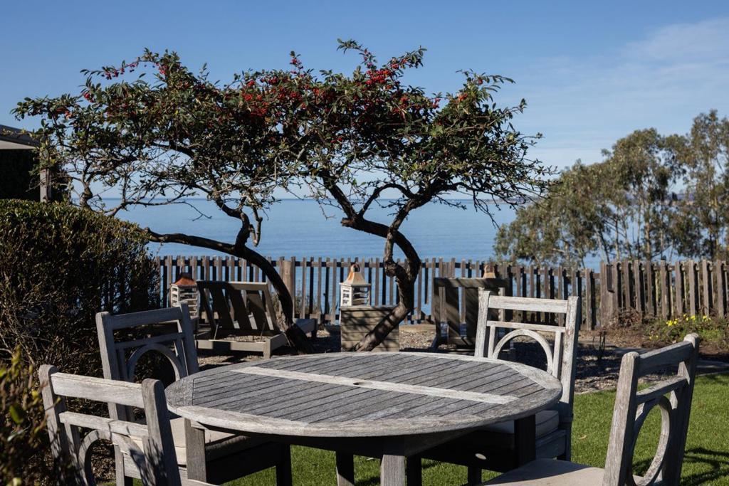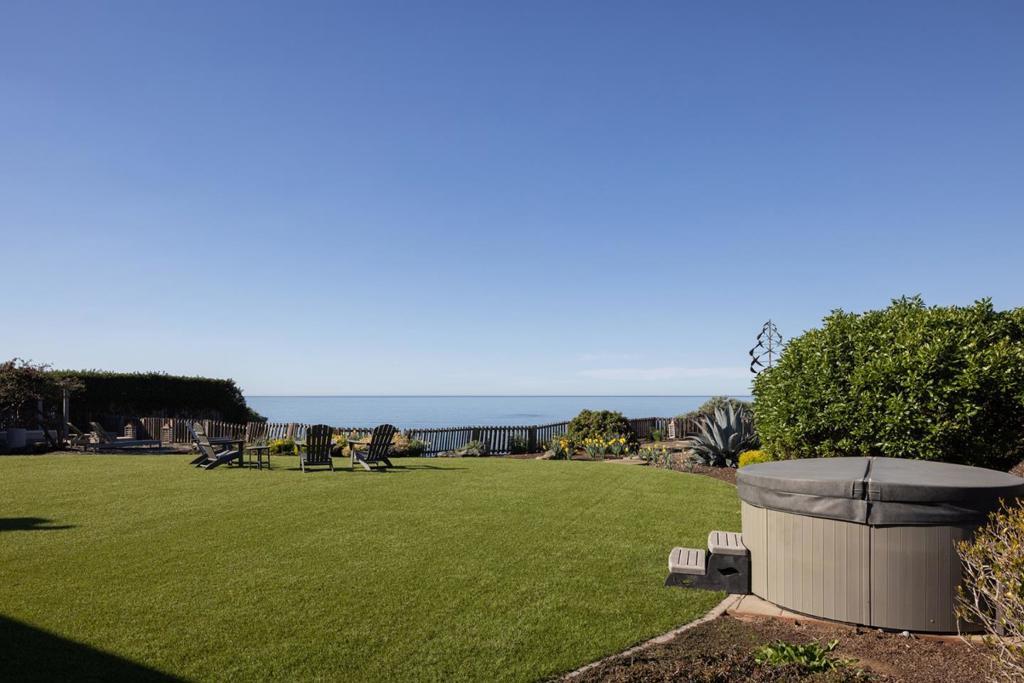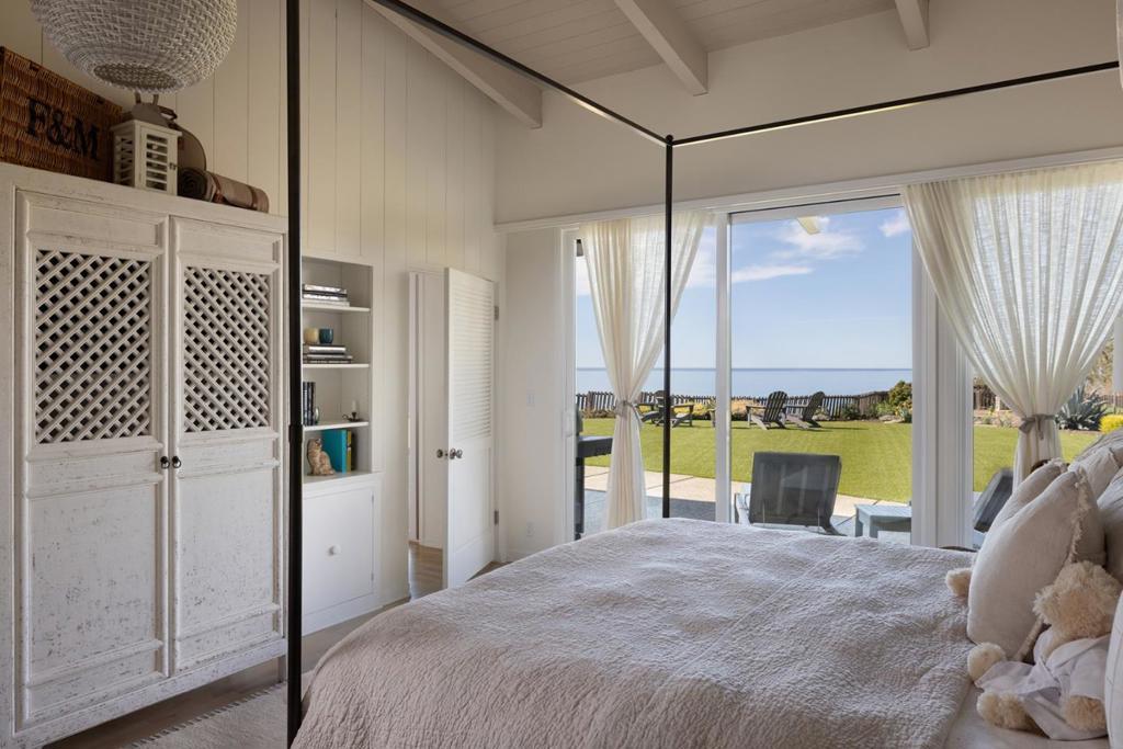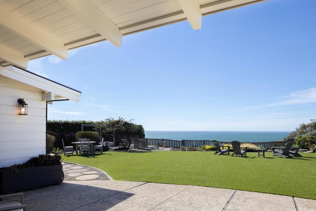 Perched on a large lot overlooking the Pacific Ocean and Platform Beach in one of Aptos' most coveted neighborhoods, 532 Bayview Drive is a private and tranquil single-level retreat with stunning ocean views. Filled with natural light, the home welcomes you through a gated paver driveway and charming covered front porch. Inside, the living room showcases vaulted, open-beam ceilings, walls of glass framing the coastline, a fireplace, and built-in shelving. The kitchen features a wet bar and bay window overlooking the garden, while the dining room offers its own fireplace for warm, intimate gatherings. The spacious primary suite enjoys sweeping ocean views, built-in shelving, an office area, and two walk-in closets. Two additional en suite bedrooms overlook the front patio. A generous laundry room provides abundant storage. One garage has been converted into flexible living space with a loft bedroom above, while a separate attached two-car garage offers ample parking and storage. Outside, the expansive lawn, hot tub, outdoor shower, gardens, and multiple seating areas create a private setting to relax and entertain, all within easy walking distance to beach access.