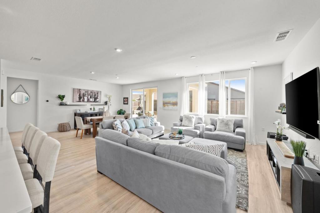 Welcome to this beautifully updated 4-bedroom, 2.5-bath single-family home offering 2,117 sq ft of comfortable living in the heart of Elk Grove. Situated in a quiet, family-friendly neighborhood within highly regarded school districts. Step inside to find upgraded laminate flooring and upgraded lighting throughout, creating a bright and inviting living space. The kitchen features stainless steel appliances, custom soft-close cabinetry throughout, and custom quartz countertops, offering ample storage and elegant finishes. The primary ensuite with dual sinks, a stall shower, and a walk-in closet, while the additional bedrooms are generously sized for family, guests, or a home office. Enjoy outdoor living with a newly designed front yard, extended concrete driveway, and custom stamped concrete backyard perfect for relaxing or entertaining. The home is close to brand-new public parks, shopping, and dining, as well as historic spots like Old Town Elk Grove. Daily conveniences are just minutes away, including Whole Foods Market and Costco Wholesale, both about a 510 min drive. Entertainment is nearby with Sky River Casino just 5 mins away, and easy access to major freeways for commuting and travel, including trips to Sacramento International Airport.