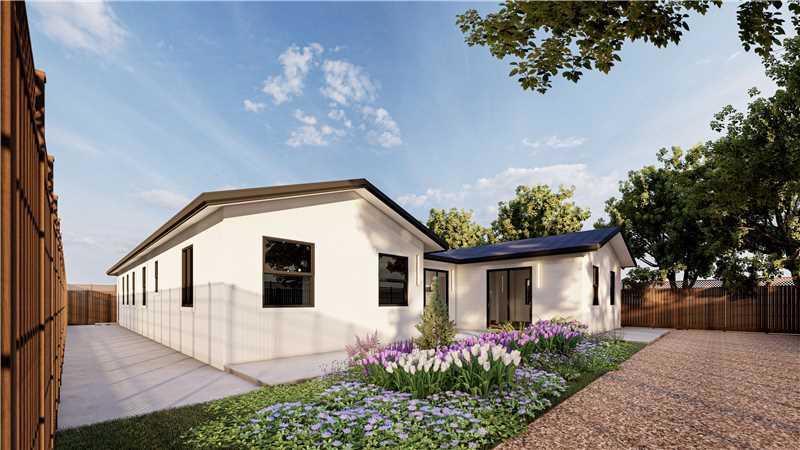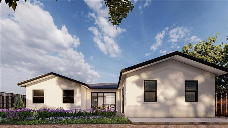 Under construction. Newly built single-story home featuring 4 bedrooms and 3 full bathrooms with a bright and functional layout designed for modern living. The open living and dining areas connect seamlessly to a spacious kitchen with a large island, creating an inviting space for everyday living and entertaining. The thoughtfully designed floor plan offers a comfortable primary suite with a walk-in closet and a well-appointed bathroom, along with additional bedrooms that provide flexibility for family, guests, or a home office. High ceilings and large windows bring in abundant natural light throughout the home. Conveniently located near parks, shopping, dining, and major commute routes, this newly constructed residence offers both comfort and convenience in a desirable neighborhood. Renders are for reference only. Final product may vary in color, material, and layout."