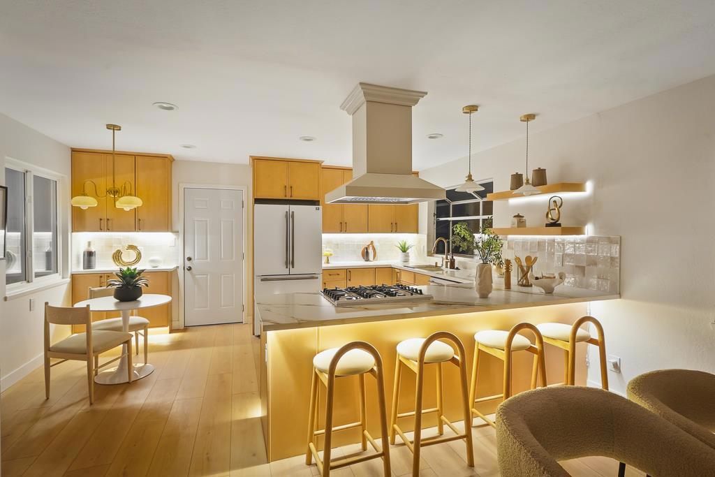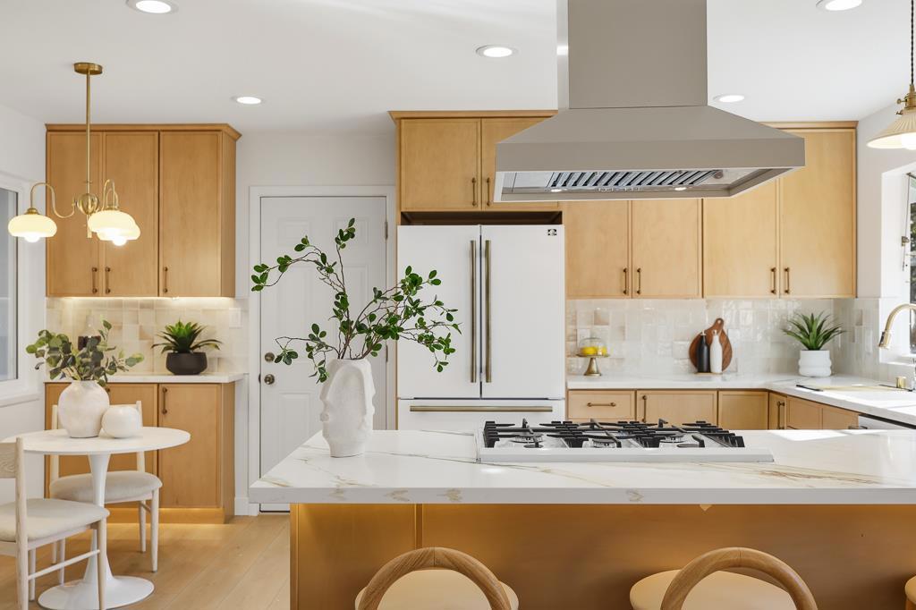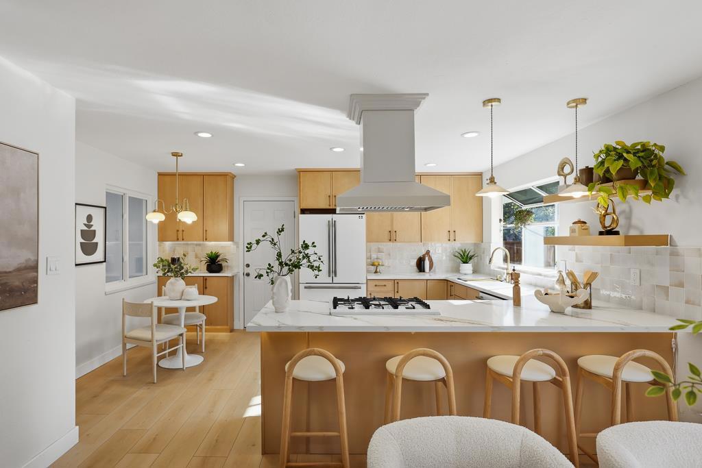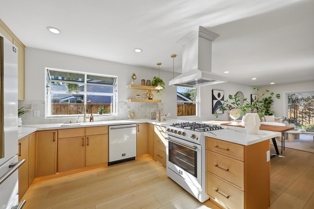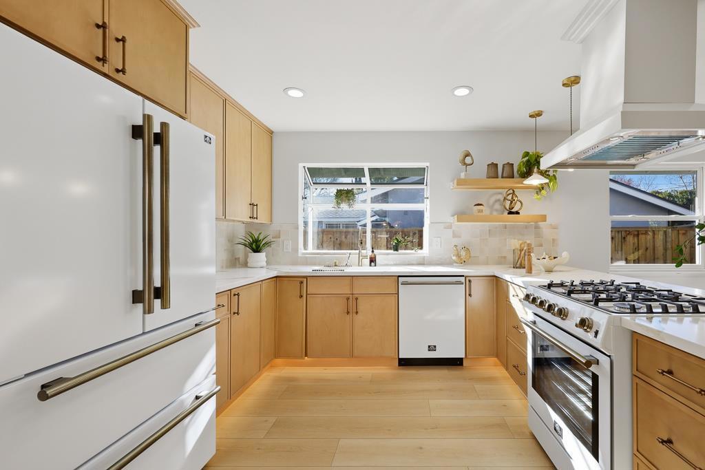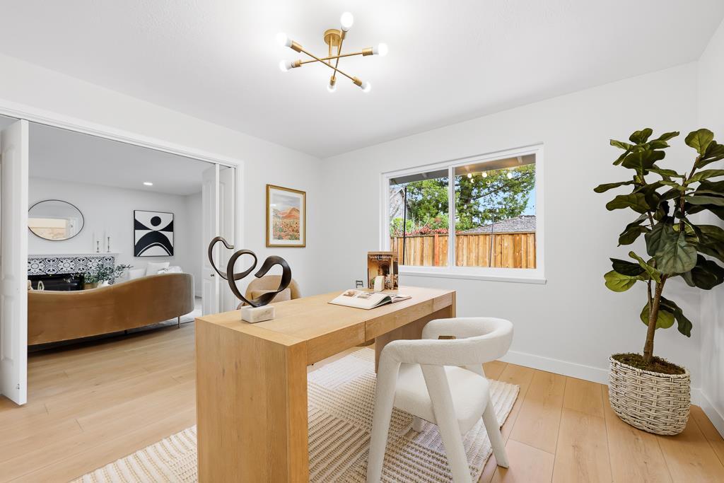 Exquisitely renovated single-family home with a permitted transformation, showcasing curated finishes, elegant craftsmanship, and a functional floor plan designed for modern living. This bright, open-concept residence offers 3 bedrooms and 3 full bathrooms, plus a separate office that can serve as a 4th bedroomideal for guests or remote work. The stunning chefs kitchen features custom cabinetry and premium appliances, flowing into the dining and living areas for effortless everyday living and entertaining. The spacious primary suite is a true retreat with two closets and a spa-inspired bathroom featuring a freestanding soaking tub, mosaic tile, double-sink vanity, and brass vintage hardware that complements the refined French-style interior design. Step outside to peaceful front and back yards surrounded by greenery, with inviting outdoor sitting areas perfect for gatherings or relaxing. Ideally located near West Valley Elementary, Cupertino Middle, neighborhood parks, Harker transportation, and with convenient access to Hwy 85 and major Silicon Valley tech campuses.