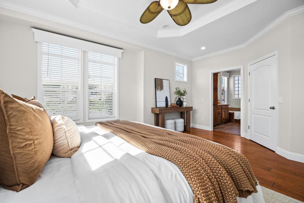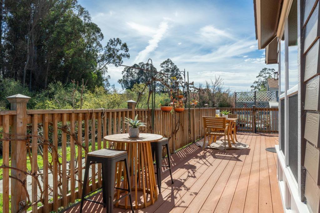 SANTA CRUZ BEACH LIFE! Natural light pours into every corner of this beautifully designed 3BR/2BA home, a prized green space location, and every upgrade imaginable. Only 3/4ths of a mile to Corcoran Beach via scenic walking trails, or meander a little further to coffee shops, dining, and our lively Sunday farmers market. Step inside to discover spacious living & dining areas that flow seamlessly into the kitchen, with granite countertops, tons of storage, stainless appliances, soaring ceilings and generous island ideal for entertaining. French doors lead out to the private deck overlooking serene greenbelt views, your own tranquil escape A full laundry room with sink, off the kitchen adds convenience without sacrificing space. The spacious primary suite is a true retreat, featuring an en-suite with luxurious soaking tub, huge shower, and walk-in closet. Two additional bedrooms offer flexibility for guests, or a home office, along with another full bathroom. Villa Santa Cruz is a resident-owned 55+ community, you'll enjoy well-maintained grounds, wide streets, and a friendly neighborhood atmosphere. Community amenities include a pool, spa, and clubhouse, fostering both relaxation and connection. This home isn't just a place to live its a gateway to the best of Santa Cruz.
