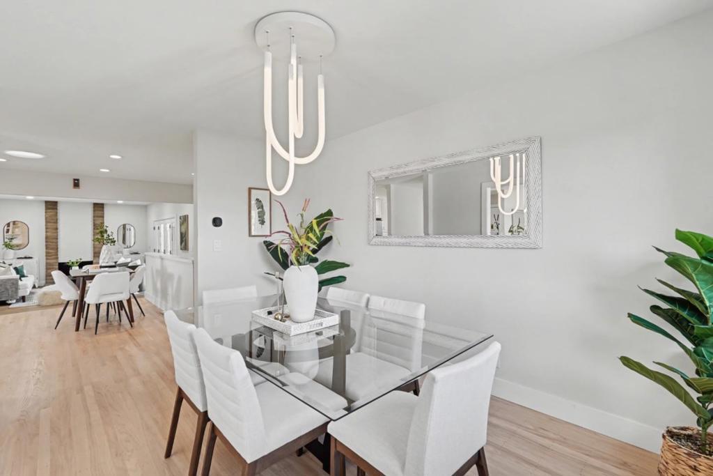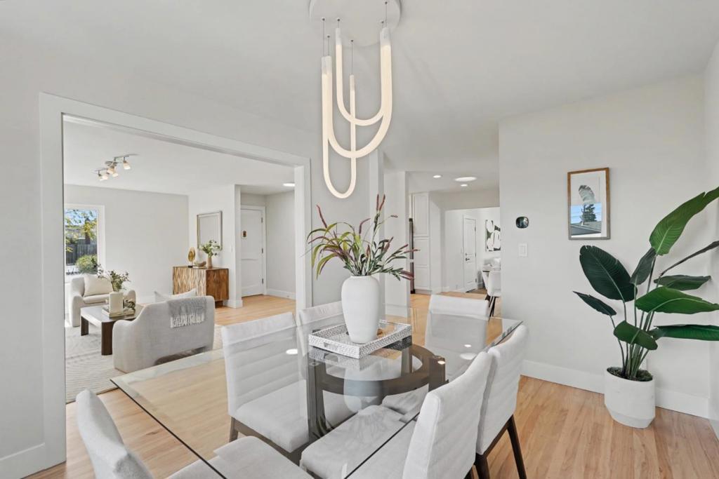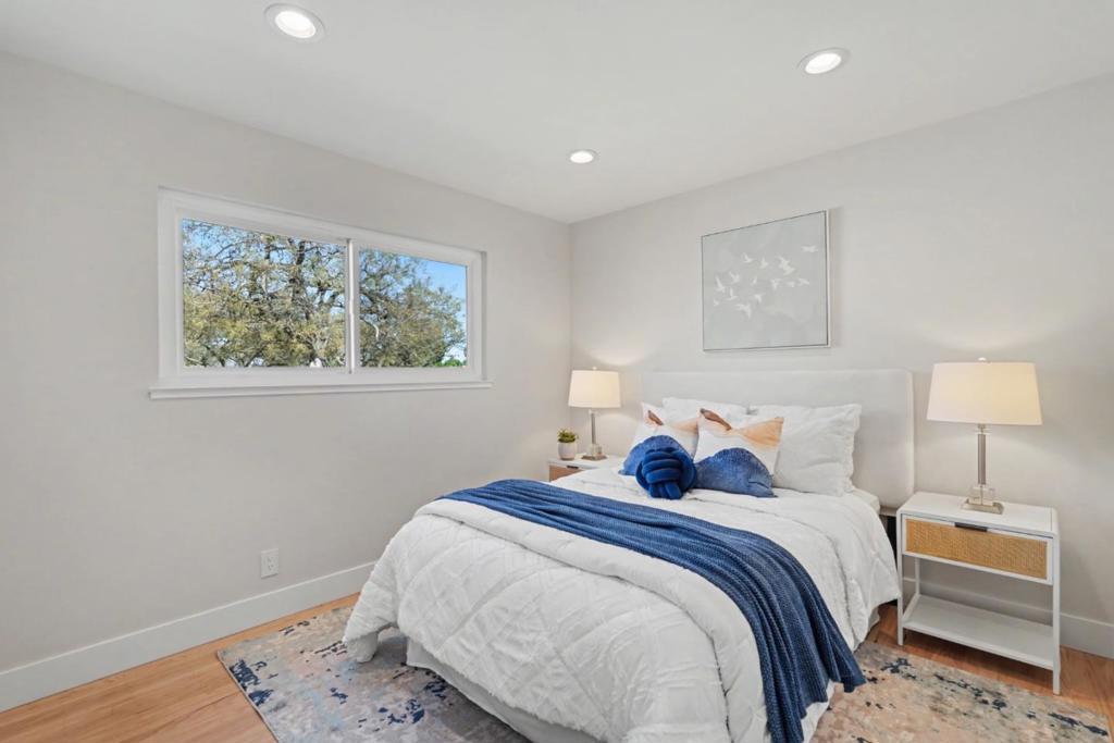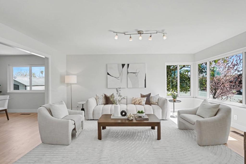 Welcome to 1035 Rockrose Ave! Lovely & move-in ready home located in the highly sought-after Ponderosa Park neighborhood! This spacious floor plan provides a separate living room, family room, & dining room, plus a downstairs den/bonus room! Light and bright kitchen boasting freshly painted cabinets, quartz countertops, custom herringbone tiled backsplash, recessed lights, pantry, & stainless-steel appliances! Other features renovated bathrooms with designer finishes throughout, newer roof (installed 2019), newer water heater, new garage door & opener, refinished hardwood floors, new interior and exterior paint, double pane windows, French doors with sidelights leading to backyard, wood-burning fireplace, fully finished 2-car garage with epoxy floors, central forced heat, copper plumbing, & more! Professionally landscaped yards featuring a large patio for outdoor entertaining, mature plants and trees, raised vegetable beds, storage shed, automatic sprinklers and drip irrigation, and producing fruit trees including an avocado & lemon tree! Prime Sunnyvale location within walking distance to Ponderosa Elementary, Ponderosa Park, Starbucks, and in close proximity to downtown Sunnyvale, Caltrain, Apple, Google, Nvidia, & many high-tech companies!