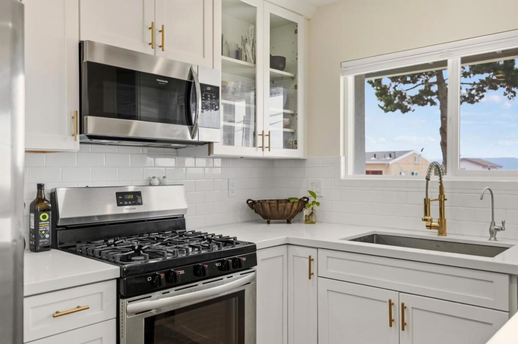 Excellent Condition with Exceptionally Wide Views of Monterey Bay Sunsets and Evening Lights. Beautifully updated turnkey home featuring expansive water views from the front deck, living room, and kitchen windows. Living here makes returning home each day a constant pleasure. From your vantage point high above the bay, enjoy sweeping views to the south of the hills where Pebble Beach and Skyline Forest meet, continuing down along the coastline to Lovers Point. Looking north, take in views toward the Pleasure Point coastline and the beautiful Santa Cruz Mountains beyond. Both the front and backyard areas are designed for low maintenance. The back patio is ideal for creating a comfortable sitting area and for hanging café lights, while raised planting boxes are ready for you to plant and harvest fresh herbs to use in the kitchen.