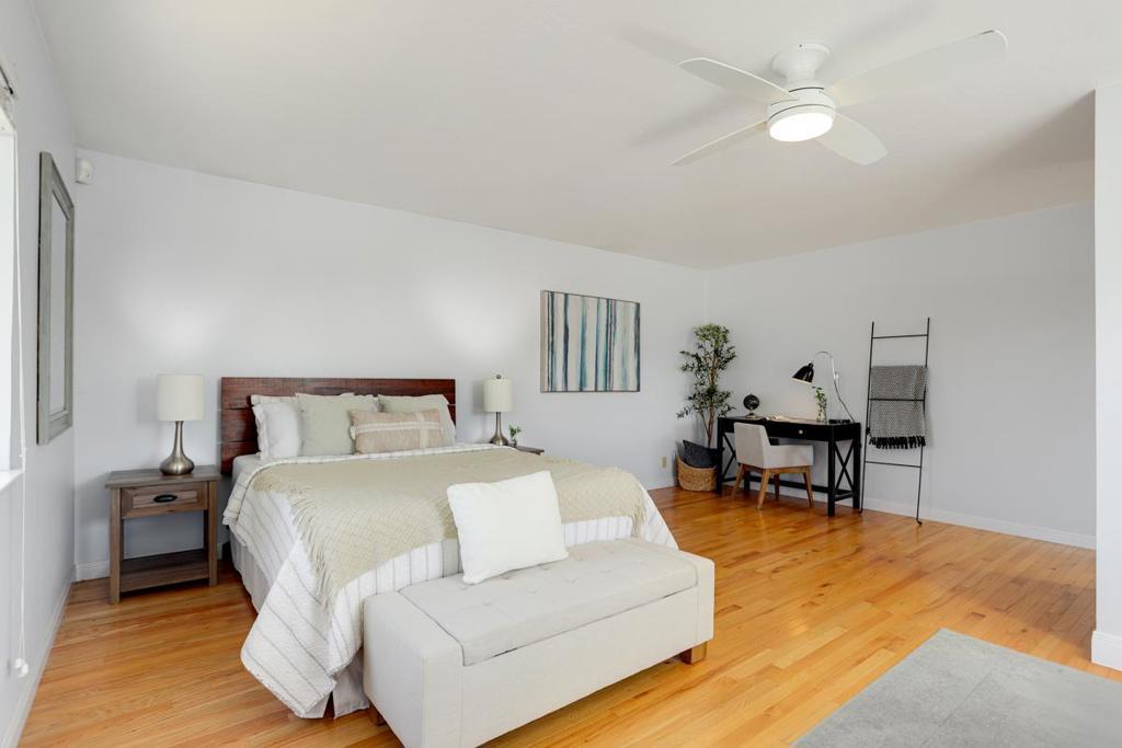 Nestled on a quiet street in a premier neighborhood, this versatile residence offers the perfect blend of charm and modern living. The heart of the home is a stunning living room featuring floor-to-ceiling windows that bathe the rich wood floors in natural light. A dedicated family room, anchored by a cozy fireplace and sliding glass doors, leads seamlessly to a large backyard patio areaan ideal setting for outdoor dining and entertaining. The main level features three bedrooms, including a primary suite with a walk-in shower, complemented by a dining area off the kitchen. Modern essentials include central heating and cooling, dual-pane windows, a recently replaced electrical panel, and an attached 2-car garage with auto remote. A standout feature is the spacious upstairs unit with a full bathroom. This flexible space offers a rare opportunity for multi-generational living, a home office, or a high-yield ADU, with potential for a kitchen and separate entrance to be added. Enjoy walking distance to Sutter Elementary, Maywood Park, and Kaiser Hospital. A short 5-10 minute drive puts you at Apple Park, Santana Row, and NVIDIA. Plus, take advantage of Santa Claras low-cost Silicon Valley Power utility rates!