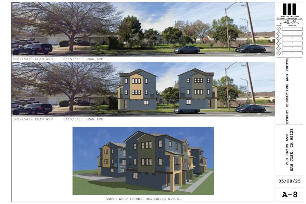 Located in a convenient South San Jose neighborhood with access to local schools and nearby shopping and transportation, 200 Hayes Ave offers a well-positioned residential development opportunity. The project proposes 11 townhome units across two three-story buildings (5 units in one building and 6 units in the other) arranged around a private internal drive aisle with individual garage access. The architectural and site plans have been prepared, and the project is ready for planning hearing, presenting a near-term development opportunity in a high-demand housing market.