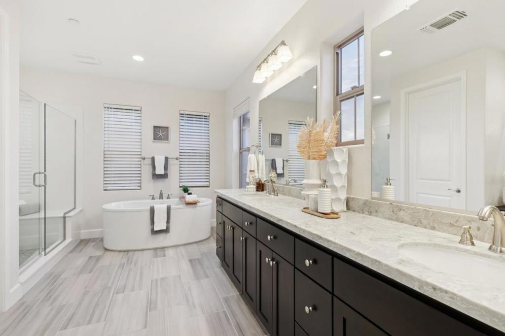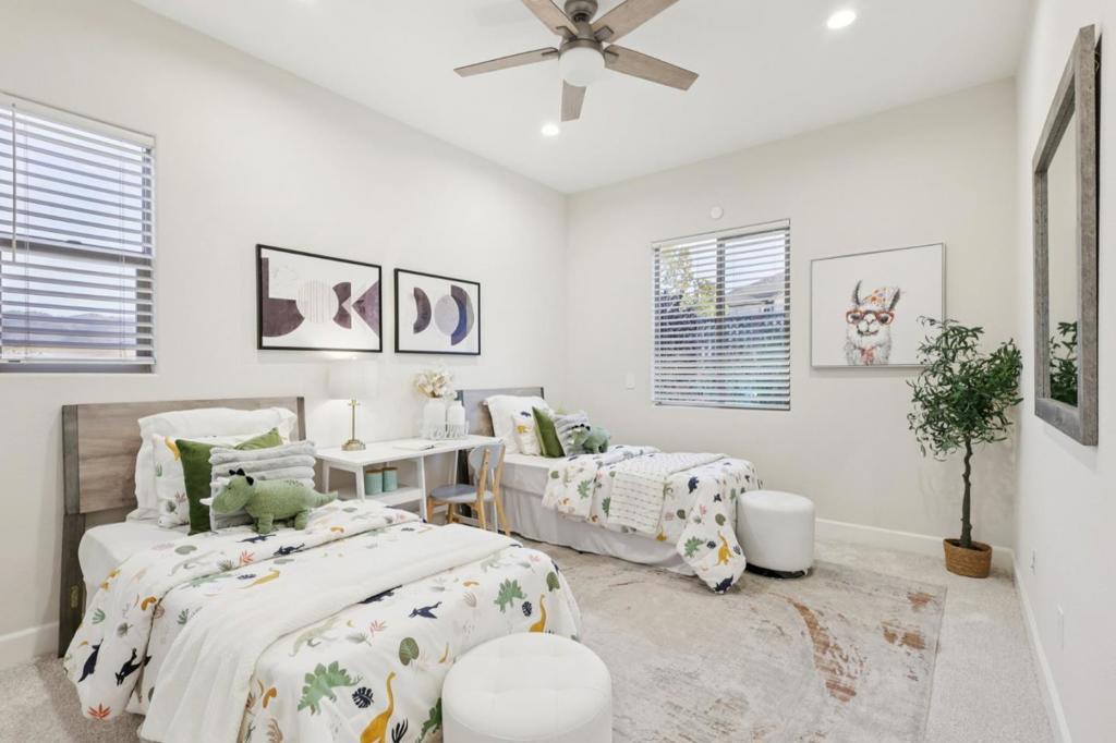 Welcome to an exceptional 5-bed, 4-bath residence built in 2019 by Lafferty Communities, offering 3,300+ sqft of luxurious living space. Perfectly situated at the end of a quiet cul-de-sac, this NW-facing home sits on one of the most desirable lots in the community, featuring unobstructed views & an elevated sense of privacy. Step inside to find soaring ceilings, expansive windows, & a bright open floor plan that blends modern design w/timeless comfort. The chefs kitchen features a grand quartz-topped island, premium Bertazzoni appliances, & ample cabinetry ideal for the inspired home chef. The great room seamlessly connects to the kitchen & dining areas, creating an effortless flow for both entertaining & everyday living. Upstairs, the primary suite is a peaceful retreat w/breathtaking mountain views, his & her walk-in closets, dual vanities, a spa-like soaking tub, & a modern glass-enclosed shower. Other beds are conveniently located on the main level, offering flexibility for guests & family. Custom hardscaping backyard w/multiple seating areas perfect for al fresco dining or relaxing under the stars. Additional highlights include brand-new carpet, a finished two-car garage. Per HOA documents, this address eligible for Chaboya Middle School. Buyer and buyers agent to verify.