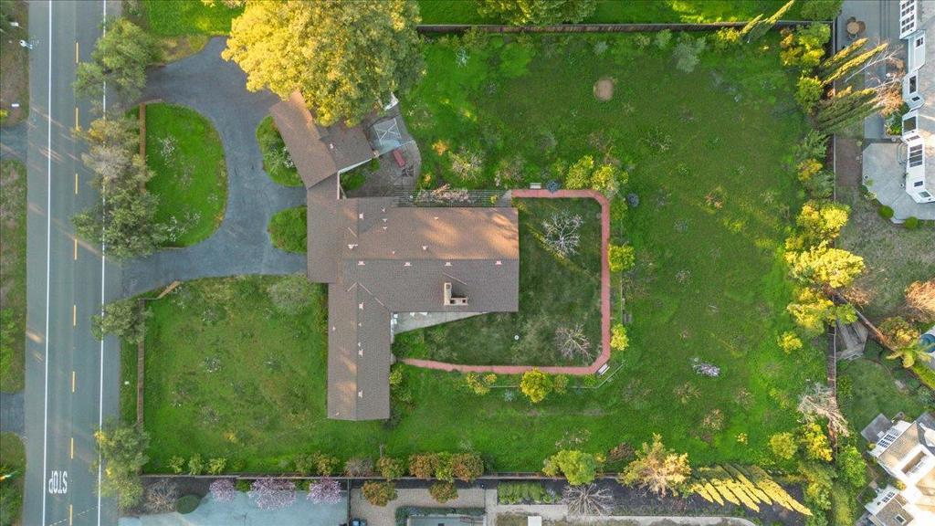 ONCE-IN-A-LIFETIME OPPORTUNITY ON NEARLY 1 ACRE | Establish your country retreat within moments of Downtown Los Altos! This breathtaking property transports you to an exciting world of rural calm, pastoral beauty, and limitless possibility. Optimizing natural light usage, the south-facing layout presents a great room with wood-burning fireplace and cathedral ceilings, spacious dining room, and charming brick kitchen with breakfast nook. All bedrooms are updated with dual-pane windows. Special details include adobe bricks, random-plank oak floors, redwood board-and-batten siding, and kiln-dried Douglas fir beams. Multiple outdoor retreats, such as a large north-facing porch with fireplace, overlook the vast luxuriant grounds. Besides a Blenheim apricot orchard, fruit varieties include orange, cherry, fig, apple, grape, pear, and more. The clear open skies let you easily see the stars at night! This dreamy parcel is flat and the homes floorplan is spacious and versatileideal for remodeling, expansion, or even new development. Blocks away from Pinewood School, Rancho Shopping Center, and downtown destinations, the home is also near prized schools like Covington Elementary, Blach Intermediate, and Los Altos High (buyer to verify attendance).