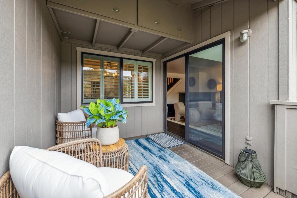 This 2-story PUD townhome (per prelim) has a layout that truly works. On the first floor, you'll find a bedroom with direct access to a private patio, plus a full bath nearby. Perfect for guests, extended family, or a private home office setup. The living room is warm and inviting, centered around a wood-burning fireplace and opening to a deck overlooking the San Rafael hills. Plantation shutters add style and privacy, while owned solar panels help with efficiency. Upstairs features two additional bedrooms, a bathroom, and a spacious bonus room that can easily serve as a fourth bedroom, media room, or work-from-home headquarters. The primary bedroom includes a walk-in closet for extra storage. In-unit washer and dryer, additional storage space, an attached carport, and plenty of street parking make everyday living easy. The HOA includes a community pool and clubhouse. Located just minutes from trails, biking paths, the Farmers Market, shopping, Dominican University, and China Camp State Park. This is Marin living done right.