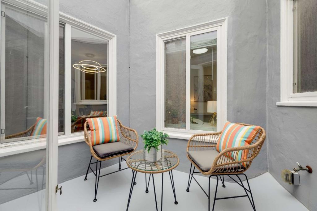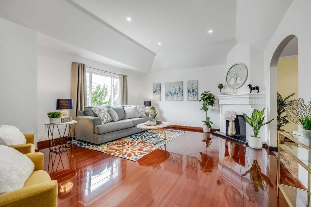 Just blocks from Golden Gate Park, Sunset Blvd, and the N-Judah MUNI streetcar, this well-maintained SFR is located in San Franciscos desirable Central Sunset neighborhood with convenient access to parks, shopping, dining, and downtown transit. A terrazzo staircase leads to a gated entrance and formal entry with granite flooring. The main level features hardwood floors, high ceilings, recessed lighting, and a graceful arched entry. The spacious living room with fireplace flows into a formal dining room, ideal for entertaining. Adjacent is a bright breakfast room with new lighting & granite flooring. The sun-filled kitchen offers granite countertops and flooring, stainless steel appliances, a skylight, ample cabinetry, and a corner Lazy Susan. An additional storage room is located across from the kitchen. Two bedrooms face the patio, creating a quiet retreat, while the hallway opens to a central patio bringing in natural light. The 1.5 bath feature marble finishes. The street level offers versatile living space with a left suite connected to the interior staircase and a right suite with bedroom, bath, and storage. Additional features include double-pane windows, tankless water heater, updated electrical panel, 2-car driveway parking, and a low-maintenance slate-tiled backyard.