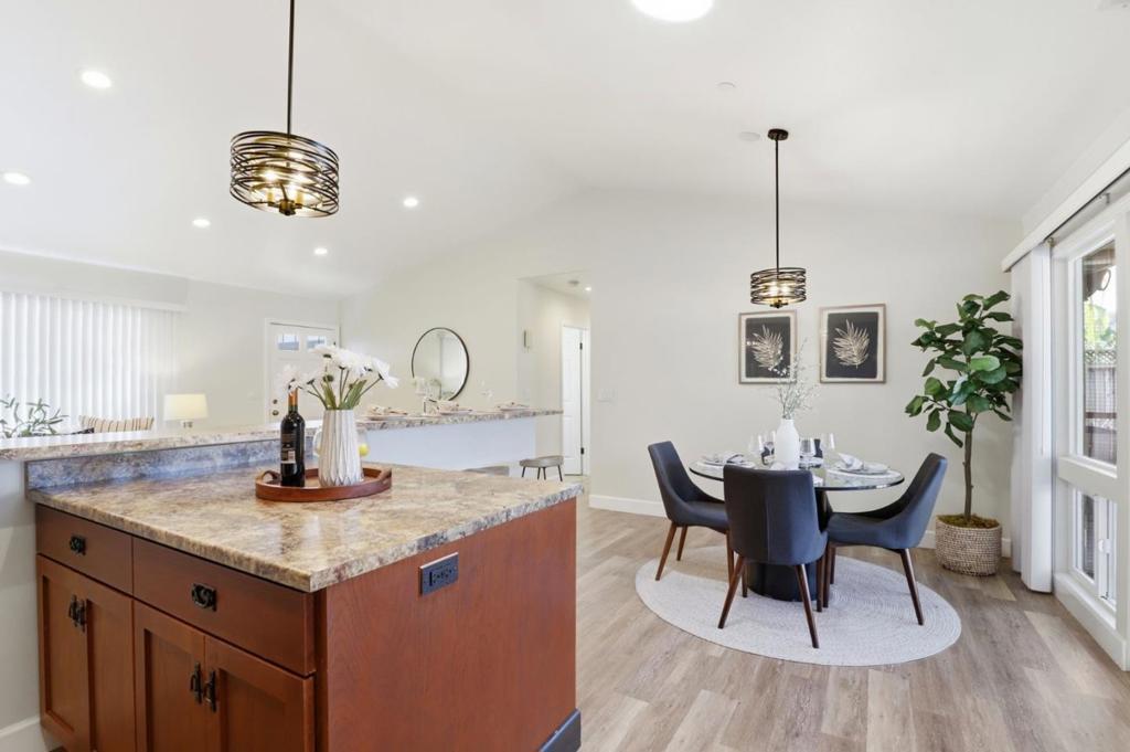 Welcome to this charming 3-bedroom, 2-bathroom home, offering 1,300 sq ft of thoughtfully designed living space. Step inside to a bright, airy interior featuring vaulted ceilings, double-pane windows, and beautiful laminate flooring throughout, creating a modern inviting atmosphere. The living room is centered around a cozy gas fireplace, perfect for relaxing evenings or gatherings with friends and family. The well-appointed kitchen blends convenience and functionality, featuring custom cabinetry, an electric range, dishwasher, microwave, and garbage disposal. The spacious primary suite includes a walk-in closet and access to the backyard. There is a dedicated utility room with washer and dryer. Enjoy a private front courtyard, ideal for morning coffee or quiet moments, along with a beautifully landscaped backyard offering space for entertaining, gardening, or simply unwinding. Additional highlights include central air conditioning and heating for year-round comfort. Located within the Oak Grove Elementary School District, this home offers convenient access to nearby schools, parks, shopping, dining, and major commute routes. Blending comfort, functionality, and welcoming indoor-outdoor living, this delightful home is a wonderful place to call home in San Jose.