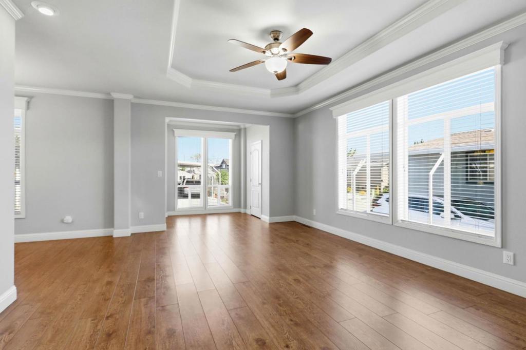 Spacious 2012 Skyline residence offering approximately 1,620 sq ft of thoughtfully designed living space in one of Sunnyvales desirable communities. This popular floor-plan offers a well-balanced layout rarely found in homes of this size. The home welcomes you with a proper foyer and coat closet, 9-foot ceilings, elegant crown molding, and laminate flooring throughout the main living areas with comfortable carpet in the bedrooms. Inviting kitchen features hardwood cabinetry, stone countertops, stainless steel appliances, ideal for everyday living and entertaining. Beautifully maintained and well cared for, the home is exceptionally clean and truly move-in ready, with air conditioning providing year-round comfort. Outside, enjoy a beautifully finished lot with pavers, tasteful low-maintenance landscaping, and a custom storage shed. Ideally located within the community for easy access in and out. Residents enjoy resort-style amenities including three swimming pools, a beautiful clubhouse, and a fully equipped fitness center. Conveniently located near many of Silicon Valleys major employers, shopping, dining, and commuter routes.