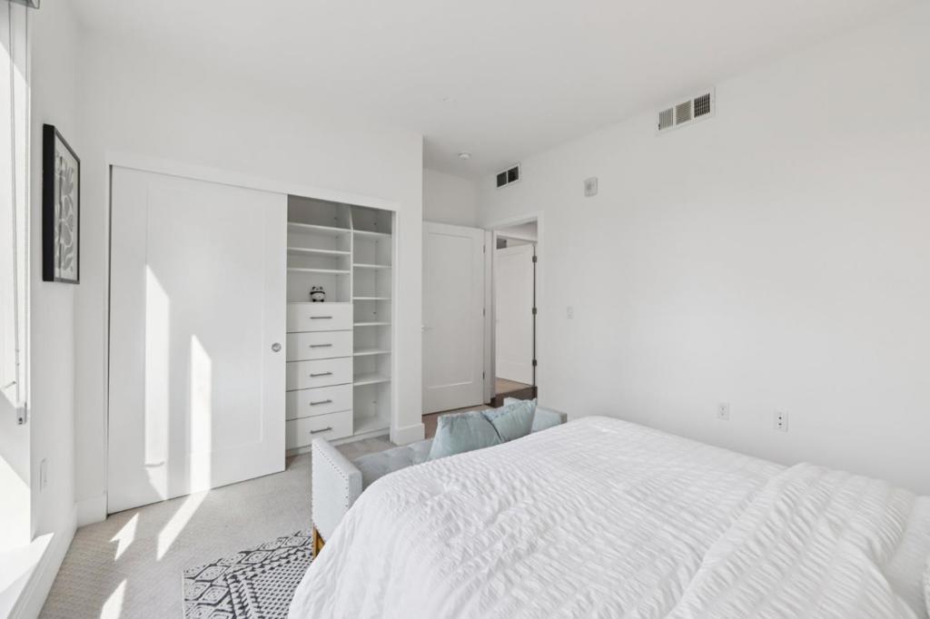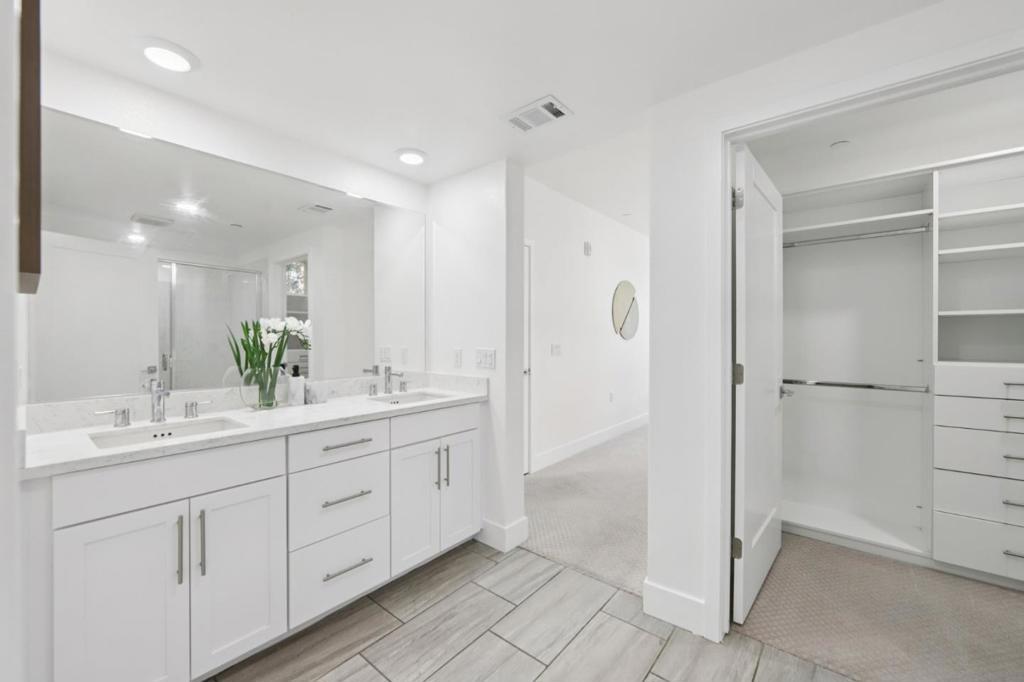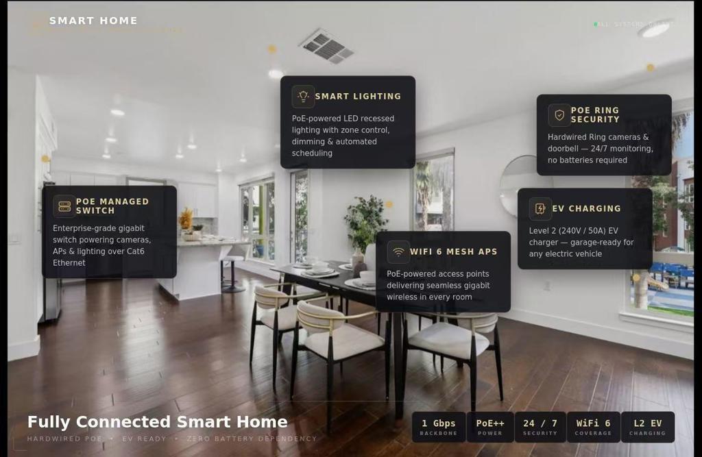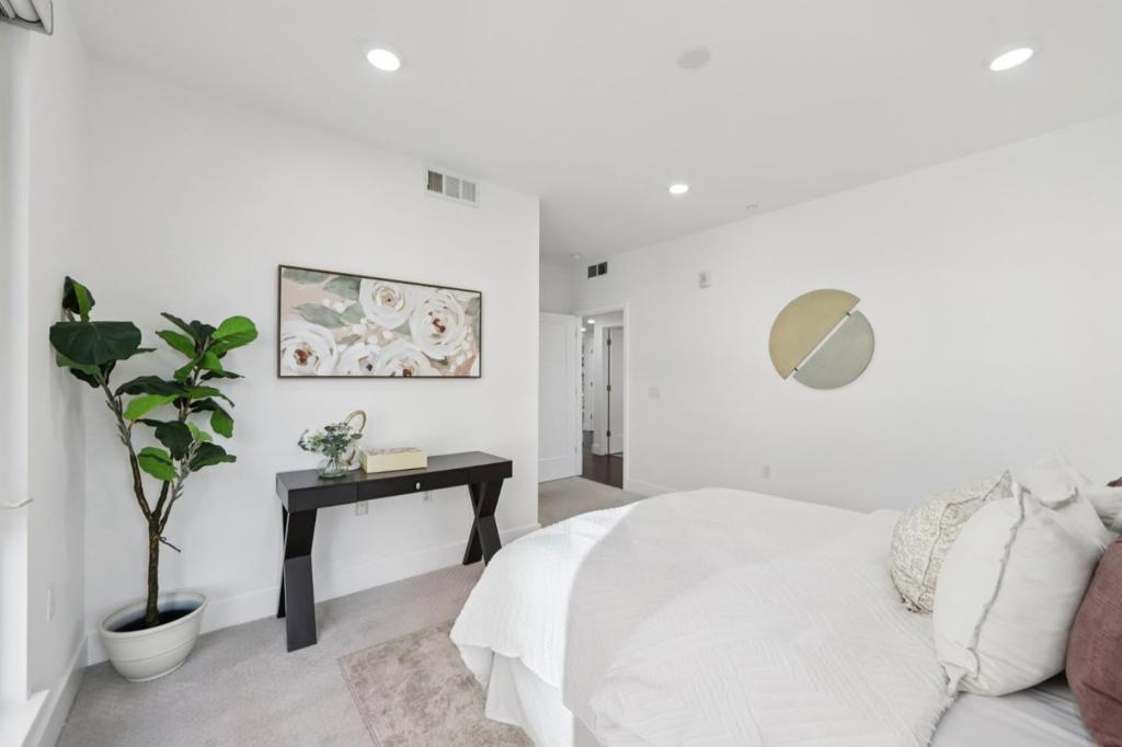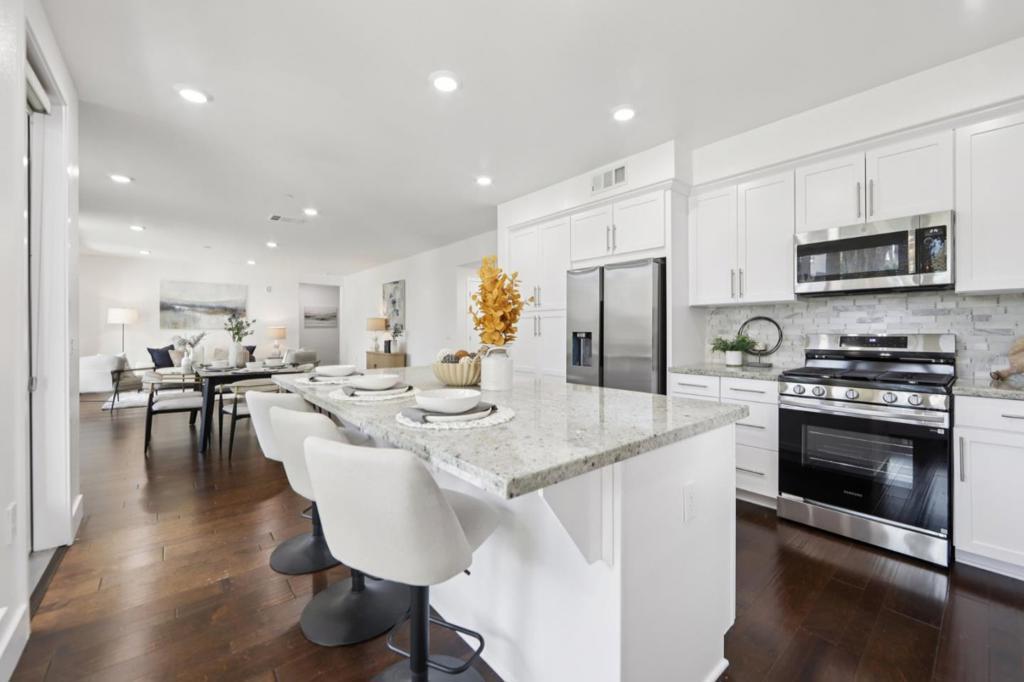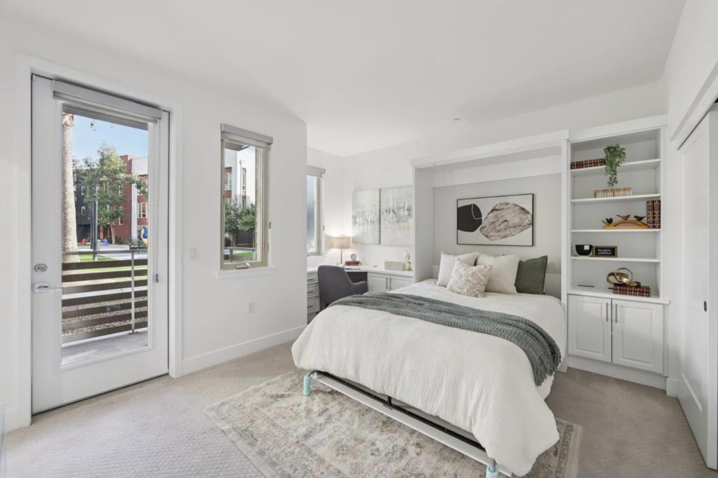 Welcome to this modern, resort like, light filled corner residence, the only 2 story townhouse style condo in the community. Featuring 2 spacious balconies with direct park views, an attached 2 car garage, and enterprise grade smart home infrastructure throughout. 3 bedrooms · 3 full bathrooms · 2 private suites · HOA $564/month The first floor suite includes a built in queen Murphy bed, custom cabinetry, and a private walk out balcony. Upstairs, the open concept main living area offers abundant natural light, corner windows, hardwood flooring, and new carpet. The gourmet kitchen features expansive countertops, sleek cabinetry, and brand new stainless steel appliances. Smart home is professionally wired with enterprise grade infrastructure. A PoE gigabit switch powers hardwired Ring cameras, WiFi 6 mesh, and smart LED lighting throughout, all running on Cat6 Ethernet with no battery dependency. EV ready garage with Level 2 charger, epoxy flooring, and built in cabinetry. Meticulously maintained in like new condition. Prime location near Great Mall, dining, shopping, freeway access, and Milpitas BART/VTA. Top rated Northwood Elementary School.