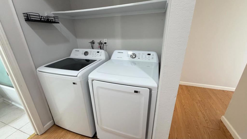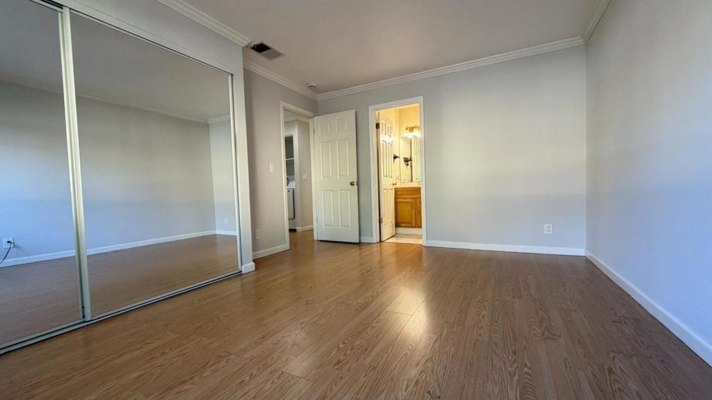 Freshly remodeled and move-in ready, this beautiful ground-floor condominium is nestled in the charming Alexian community surrounded by mature trees and a resort-style swimming pool. The spacious 2-bedroom, 2-bath home features modern hardwood floors and a bright open living and dining area with sliding doors leading to a private patio, ideal for relaxing or entertaining. The updated kitchen offers stylish quartz countertops, a designer backsplash, and abundant cabinet space. Additional highlights include in-unit washer and dryer and two dedicated parking spaces for added convenience. Ideally located within walking distance to Regional Medical Center with easy access to nearby amenities and major commute routes.