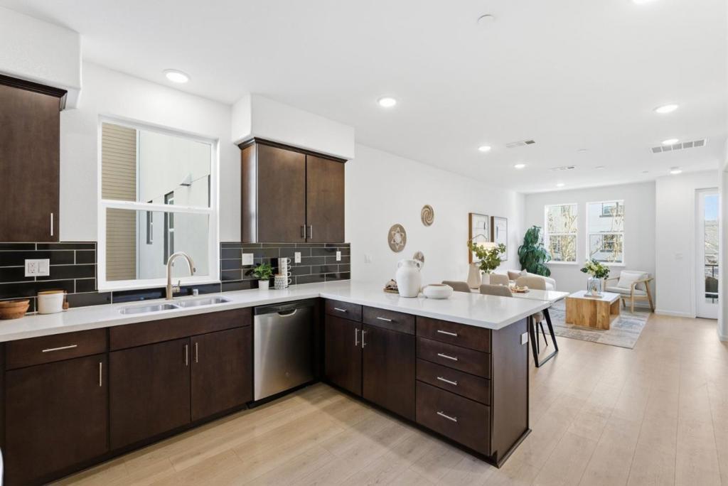 Live in the center of it all! Built in 2018 and perfectly situated in the heart of Silicon Valley, this bright 3BD/3.5BA home offers modern design and exceptional commuter convenience. A ground-level bedroom with full bath provides flexibility for guests, multigenerational living, or a private office. The main level features a spacious open-concept living and dining area, ideal for everyday living and entertaining. The stylish kitchen showcases quartz countertops, designer backsplash, a gas cooking range, and contemporary finishes. Engineered wood flooring and new designer carpet add warmth and comfort throughout. Side-by-side 2-car garage. Community amenities include a clubhouse and playground park. Conveniently located near shopping centers, restaurants, and everyday conveniences with easy access to major highways. Minutes to leading tech employers including Google, Amazon, Microsoft, LinkedIn, and Nvidia. Modern comfort. Prime Silicon Valley living. Fantastic Opportunity!
