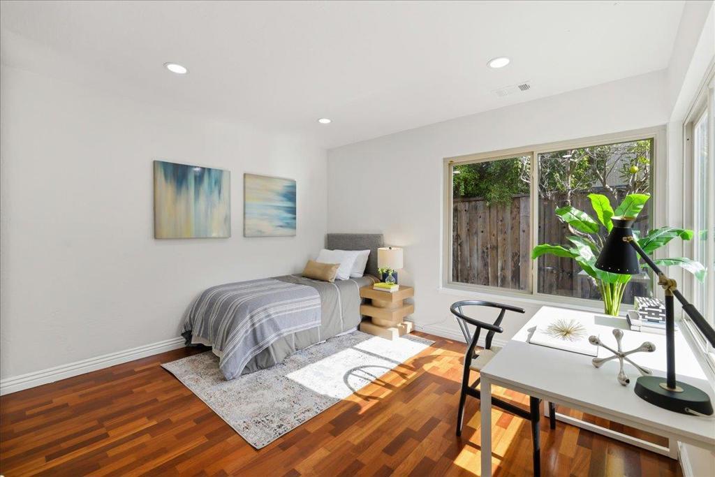 Welcome to a rare opportunity to own a spacious single-level home in the scenic, trailside community of Redwood Shores. Surrounded by tranquil lagoons, scenic bay trails, and beautifully maintained parks, this inviting home captures the essence of relaxed Peninsula living with a peaceful, resort-like atmosphere. Bathed in natural light, the home features an open and airy floor plan designed for comfortable everyday living and effortless entertaining. The spacious living room, high ceiling, and a warm wood-burning fireplace create a cozy focal point for gathering with friends and family. Laminate flooring flows throughout the home, while the dining area sits conveniently beside the kitchen for both casual meals and special occasions. Multiple doors lead to a private garden patio, offering a seamless indoor-outdoor connection and a quiet space to unwind and entertain guests. EV charger installed, coated garage floors, and fiberglass dual-panel windows and doors. Residents enjoy access to community amenities, including a tennis court and playground, all just moments from shopping at Nob Hill Foods, fitness and recreation at Bay Club. Convenient access to the San Francisco International Airport and Silicon Valley. Combining comfort, convenience, and the natural beauty of the Bay.