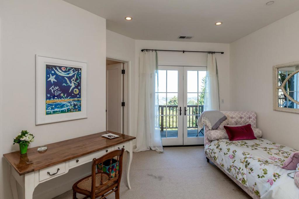Stunning views of Stanford, San Francisco Bay, and the East Bay, just 10 minutes from downtown Woodside and 4 minutes to Alices Restaurant. Custom-built in 2004 on 1.4 acres with INCREDIBLE QUALITY AND SEISMIC INTEGRITY, this home exudes quality features including walnut floors, 12-foot ceilings, and fireplaces in the living and dining rooms. The large kitchen features Carrara marble and zinc countertops. Every bedroom and main living area opens to wraparound decks with sweeping views. Dedicated office for remote work, and a large 2-car garage. Level yard for entertaining, with room for pickle ball court, plus a sunny pool area. Direct walking distance access to scenic hiking on Mid-Pen Open Space trails. Convenient door-to-door bus to top-rated Portola Valley schools.