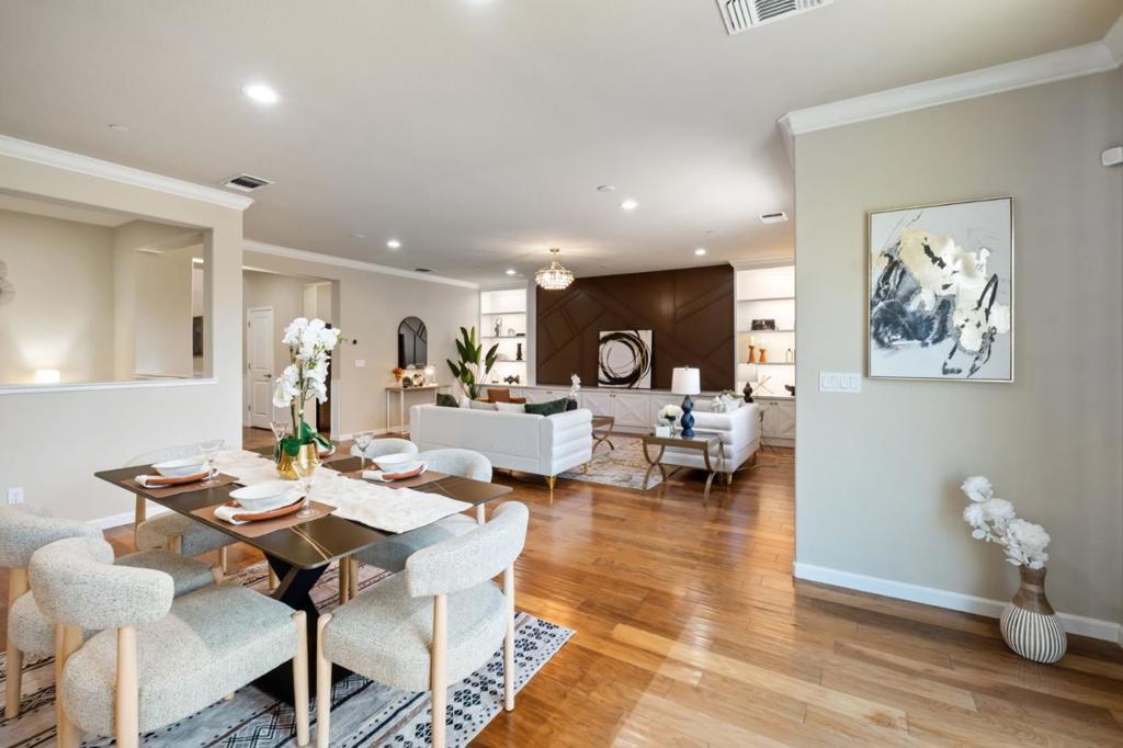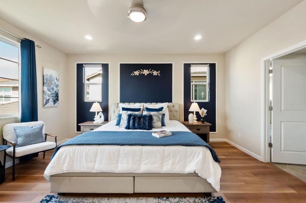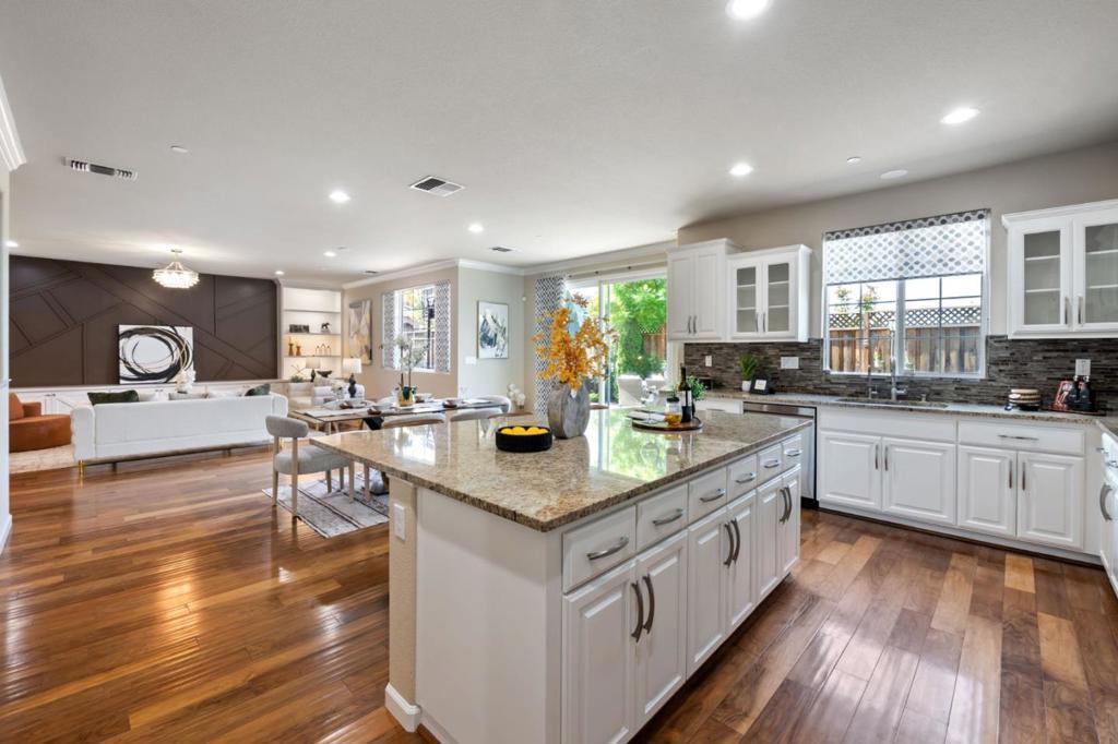 Welcome to this beautifully maintained Union City home offering comfort, style, and modern convenience in a prime location. Designed for both everyday living and entertaining, the home features spacious living areas, recessed lighting, hardwood flooring throughout, and an open-concept layout. The upgraded kitchen showcases fresh white cabinetry, a large island with upgraded countertops, stainless steel appliances, and seamless flow into the dining and family rooms. A desirable first-floor bedroom with an attached full bath, walk-in closet, and custom built-in shelving is perfect for guests, multigenerational living, or a home office. Premium finishes include upgraded living room cabinetry and floor-to-roof stone cladding in bathrooms. Tech-ready and energy efficient, the home offers a wired network with media hub, home theatre wiring on both levels, fully paid solar panels with PG&E net metering, and 220V EV charging in the garage. Set on one of the largest lots in the community, the finished backyard includes lawn, play space, outdoor dining, gazebo seating, and mature fruit trees. Conveniently located near top-rated schools, Union Landing, parks, and easy access to I-880, Hwy 84, and Hwy 92.