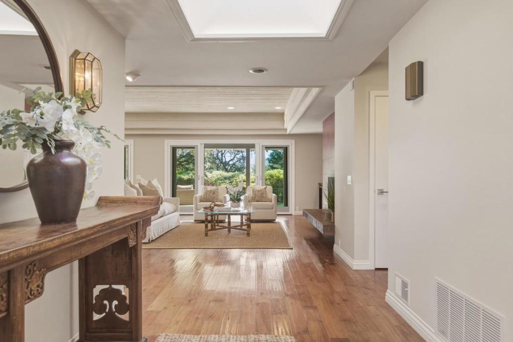 Ideally situated across from the lush green open space at the end of the MPCC driving range and surrounded by majestic oak trees, this single-level home embraces the natural beauty of Pebble Beach. The front entrance opens into an enclosed patio, offering both privacy and a warm, inviting outdoor living space. The remodeled kitchen and family room provide expansive views, creating a comfortable and casual environment for everyday living. The large, open dining and living room feature high wood ceilings and provide easy access to both the patio and backyard, making these spaces ideal for entertaining or relaxing. Three bedrooms and three bathrooms are thoughtfully arranged to ensure separation and privacy. The spacious primary bedroom stands out with its wall of closets and extensive built-in bookshelves, offering both storage and a touch of elegance. Walk to the beach, bike to Spanish Bay, or simply relax and enjoy the lovely setting.