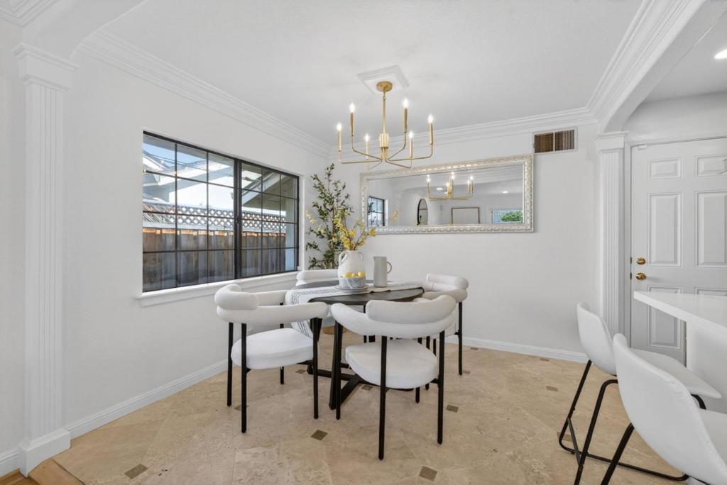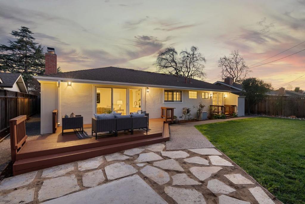Located in a highly desirable Santa Clara neighborhood, this four-bedroom residence blends timeless finishes with modern comfort in a highly convenient setting. Updated throughout, the home showcases beautifully refinished light hardwood flooring, crown molding, updated bathrooms, and stylish new lighting and hardware that create a polished and inviting atmosphere. The well-appointed kitchen features rich, real wood cabinetry, quartz countertops, and stainless steel appliances, offering both functionality and refined style. Designed for everyday living and effortless entertaining, the main living areas flow seamlessly to the outdoor space. Step outside to a spacious patio deck overlooking a generous backyard with a lush grass field, storage shed, and multiple tiered areas ideal for lounge seating or outdoor dining. Whether hosting summer grill gatherings or enjoying a peaceful evening outdoors, this backyard provides the perfect setting. Ideally situated just minutes from the vibrant dining and shopping destinations of Santana Row and Westfield Valley Fair, while offering excellent commuter access to Interstate 280 and San Tomas Expressway. This exceptional location combines neighborhood charm with close proximity to some of Silicon Valleys most sought-after amenities.