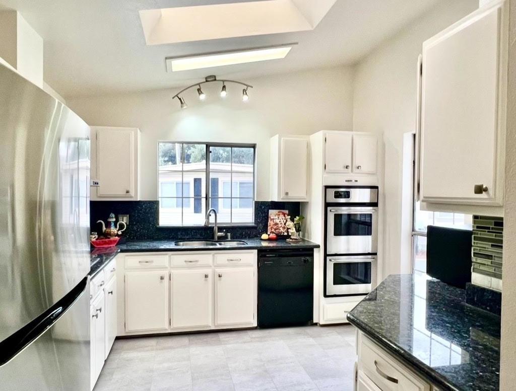 This is a gem with great space rent $1,476.70 for your clients! Charming 3 bedrooms, 2 bathrooms beauty home located in the quiet neighborhood featuring a bright and wide-open floor plan! El Dorado MHP is a desirable community for all age park, offering a pool, club house, recreation room and much more! A spacious living room, Separate dining area with new waterproof floor. Gourmet kitchen features granite counter top, new refrigerator (2024), gas stovetop, ample cabinetry, microwave, dual stainless steel sink and new waterproof floor. Dual pane windows, New interior painting, Two bedrooms are generously sized with pergo floor. Spectacular master bedroom with walk-in closet and new waterproof floor, Wonderful master bathroom with new faucet sets, new shower stall, dual sink, oversized tub, skylights and new waterproof floor. Laundry room with ample cabinetry, shelves. Washer & dryer stay. Easy access to shopping, freeways, restaurants & Hi-Tech companies. Enjoy comfort, convenience and community living at its best in El Dorado MHP! You don't want to miss it!