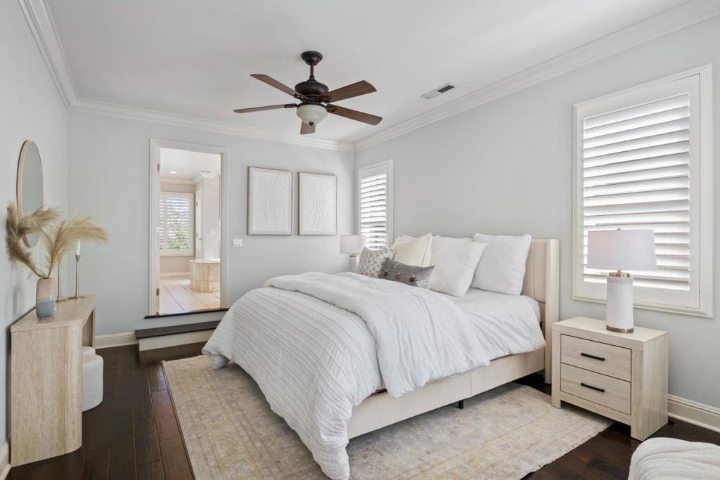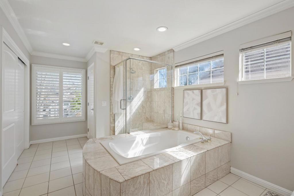 Welcome to the desirable Rose Garden neighborhood, known for its vintage homes and unique architecture! Built by Summer Hill Homes in 1996, situated on a desirable corner lot on a tree-lined street, this home has been thoughtfully remodeled with every detail considered. Conveniently located near dining, shopping, parks and schools! Formal Living Room with cozy fireplace, recessed lighting and wood flooring, Formal Dining Room, Remodeled kitchen with top-of-the-line stainless steel appliances, marble countertops, walk in pantry and breakfast bar seating, Spectacular Great Room with box ceiling, fireplace and large sliders overlooking the backyard, Primary Suite and bath with enclosed shower, separate tub and dual vanities, Beautiful wood flooring throughout, Upstairs laundry room, Dual heating & AC climate zones, Freshly painted interior & new exterior shingles and stain, In-home AV system is fully wired with surround sound and built in speakers in the great room, kitchen and the front room, new staircase and railing, shutters and crown molding, Backyard patio area perfect for entertaining with StruXture motorized pergola, with surround sound and exterior lighting, heating and cooling (fan), built in BBQ and TV, Brand new Certainteed Roof installed by Los Gatos Roofing