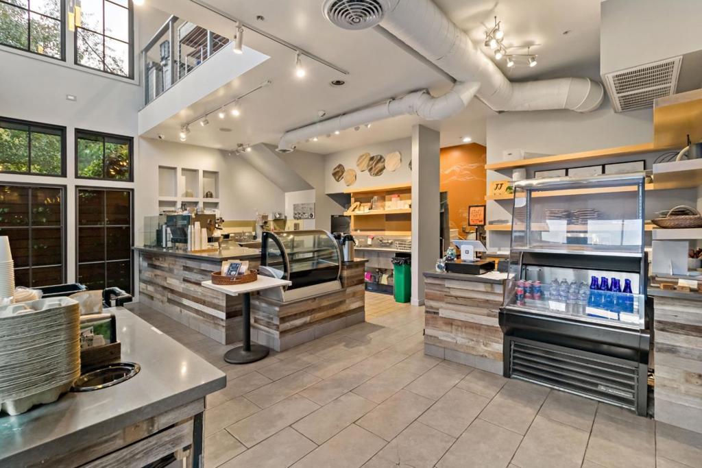 Rare Saratoga Village investment opportunity with stable long-term income. Two architecturally distinctive ground-floor commercial retail units offered as a bundled sale in one of Silicon Valleys most desirable village settings. The modern space features dramatic high ceilings, large picture windows, bi-fold doors opening to an inviting patio with stylish awnings, beautiful views of the Santa Cruz Mountains. The light-filled interior creates a welcoming retail environment w/ strong street presence & excellent visibility. Located in a contemporary mixed-use building at the foothills of the Santa Cruz Mountains, the property enjoys steady pedestrian traffic & is just steps from Saratogas renowned restaurants, cafés, boutique shops, wine tasting rooms, parks, scenic trails. Both units are leased to the same established tenant, Sues Gallery Café, under a 10-year lease with no vacancy through the end of 2033, offering dependable & stable income for investors. This unit includes an upstairs seating area w/ large picture windows & beautiful mountain views. The upper level is currently used by the tenant as an employee rest & storage area, providing additional functional space & flexibility. Units must be sold together. By appointment only. Please do not disturb the operating business