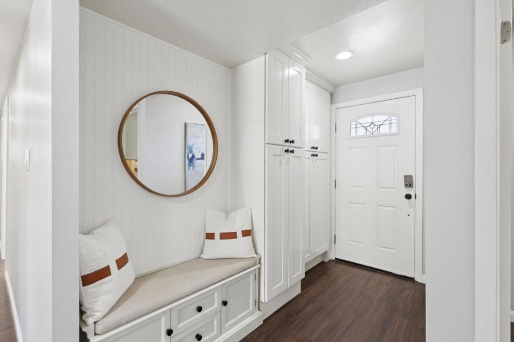 Nestled in the desirable Santa Clara, heart of the Silicon Valley, this beautifully renovated single-story contemporary home offers a stunning open floor plan filled with natural light. Perfect for entertaining and everyday living, this thoughtfully designed residence combines modern elegance with practical comfort. The spacious living room features durable SPC flooring, large windows, and recessed lighting throughout, creating a bright and welcoming atmosphere. The gourmet kitchen boasts top-of-line stainless steel appliances, custom cabinetry, slab quartz countertops, and a custom-built waterfall island ideal for large gatherings. The luxurious master suite offers an elegant granite vanity with a glass shower stall, providing a private retreat. Distinctive features include double pane windows/doors, new interior paint, central heat & A/C, tankless water heaters, EV charger, 5.1 channel speaker system, professional ethernet cable wiring, SPC flooring, low-maintenance front & back yards hardscaping featuring premium Belgard pavers and much more. Located in an incredible area close to Apple Park, Nvidia headquarters, major tech companies, and easy access to Lawrence Expressway and Highway 101. Enjoy the convenience of being near vibrant shopping and dining! Your dream home awaits!