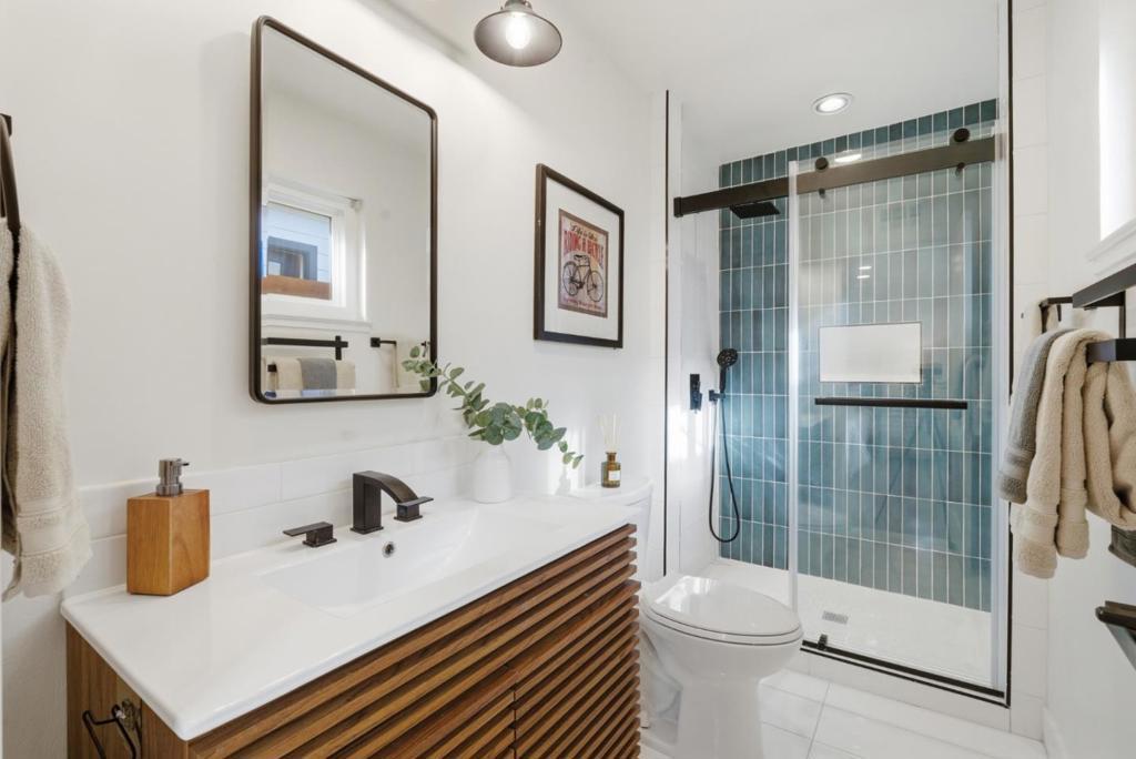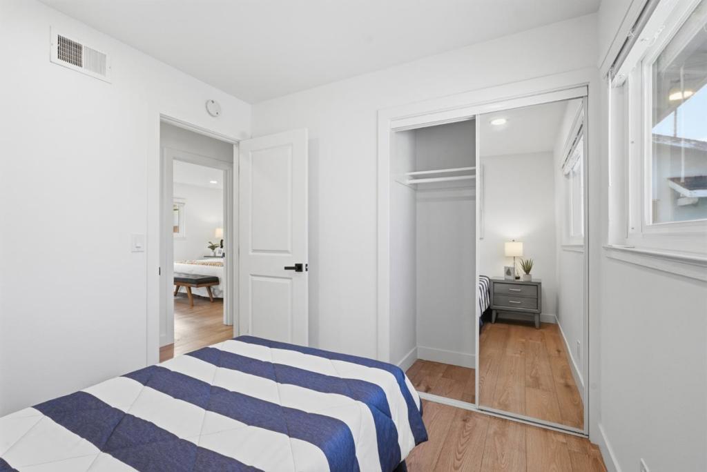 Total living space 1774 SqFt, Owned solar ADU This unique beautifully remodeled single-story home offers a bright, modern living environment long with a valuable 450 sqft accessory dwelling unit (ADU), providing exceptional flexibility for multigenerational living, rental income, or a private workspace. The main residence plus ADU features 4 Bedrooms, 3 bathrooms, total living space 1774 SqFt. The primary home has been extensively updated with a contemporary open layout. The upgraded kitchen features a large island, Quartz countertops, and a modern tile backsplash, complemented by stainless steel appliances including a gas range. A spacious family room with a patio door brings in abundant natural light, creating a warm and inviting atmosphere. Both bathrooms have been fully remodeled with custom flooring and stylish tile showers. Additional improvements include double pane windows, an electric fireplace, new water heater. The ADU offering a self-contained living space ideal for extended family, guests, or rental opportunities. With its own entrance and functional layout.