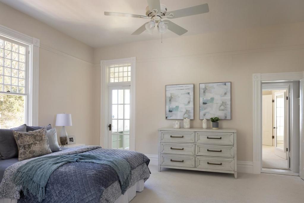 Perched above Santa Cruz with sweeping ocean views, 535 Highland Avenue is the iconic Torchiana Estate, also known as Villa Fair View. Recognized with a Santa Cruz Historical Society plaque dating to 1886, this beautiful Victorian residence is a storied local landmark. A gated entry reveals ~3.42 acres of lush, park-like grounds surrounding the ~5,949 sq ft, 8-bedroom home. Inside, a checkerboard-tile entry introduces formal dining and living spaces, including a living room with an ornate carved fireplace and a cozy library. Douglas Fir floors, clawfoot bath tubs, stained glass window and countless charming details reflect the home's 19th-century origins. A thoughtful 2010 addition includes a private ~900 sq ft caretaker's unit, while the expansive primary suite offers two walk-in closets. Amenities include a pool, balcony, deck, 3-car garage, and a patio overlooking the entire bay. Historically associated with Dr. Henry A. van Coenen Torchiana, noted as the Consul General of the Netherlands, and later home to the Adrian Dominican Sisters, Villa Fair View is deeply woven into Santa Cruz history. From its elevated vantage point, the Pacific Ocean unfolds as a dramatic backdrop, offering stunning views and timeless character.