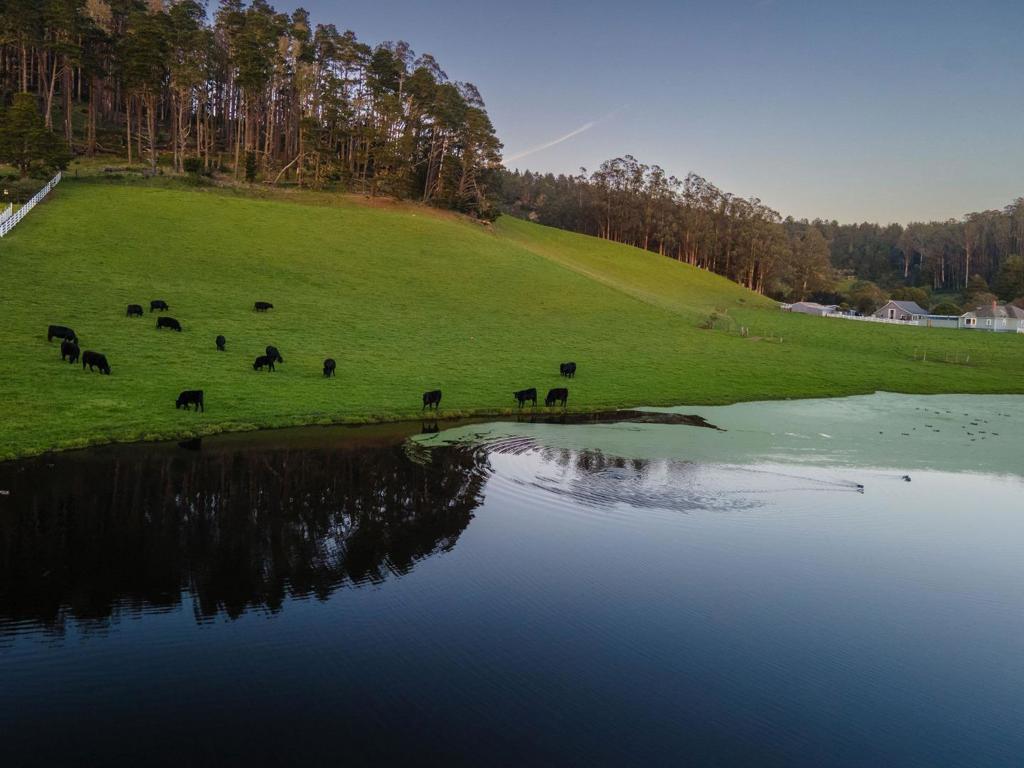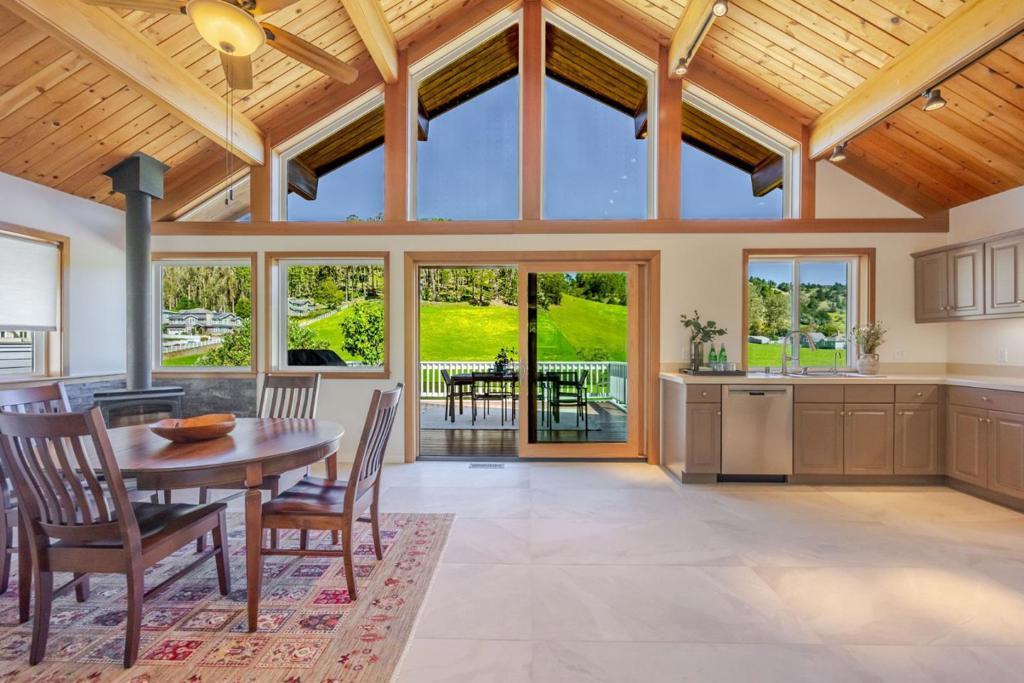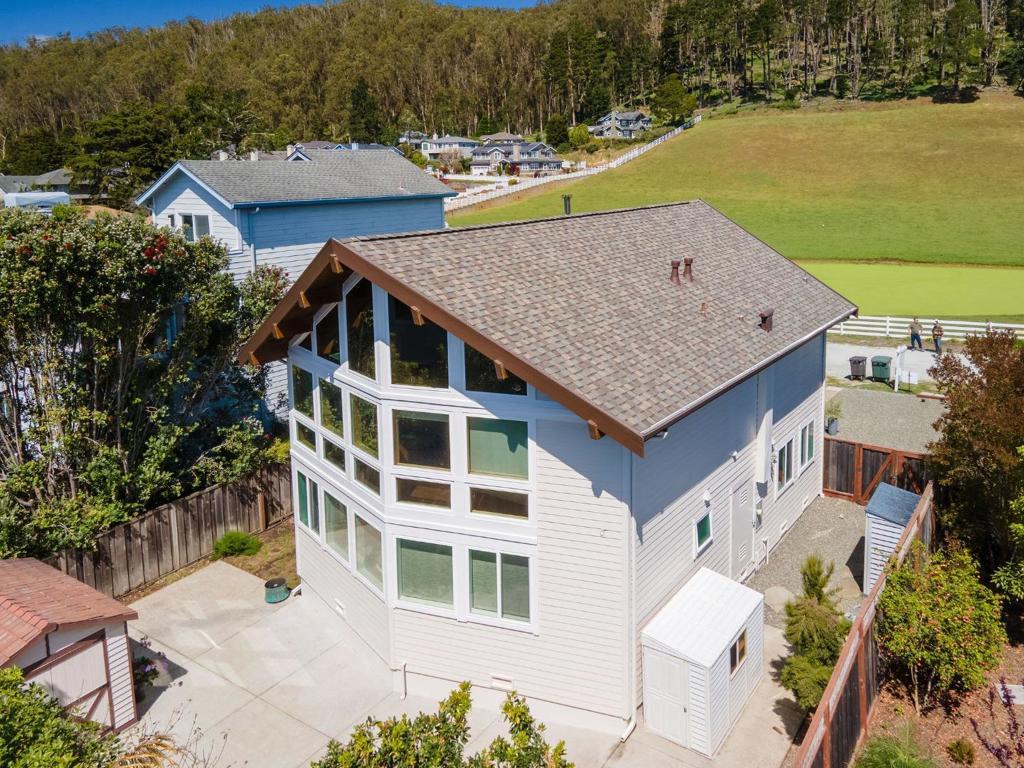 Sun-filled East Miramar home with panoramic views in both directions - unobstructed ocean and Pillar Point Harbor vistas to the west, and rolling pasturelands and Quarry Park to the east. Expansive windows and vaulted ceilings flood the upper level with natural light, framing sailboats returning to port and twinkling harbor lights after sunset. A second-story composite deck off the kitchen and dining area overlooks open pasture and forest - perfect for BBQs, al fresco dining, or relaxing in the sun. The reverse floor plan places main living areas upstairs for maximum impact, while the lower level offers a cool, restful bedroom retreat. The primary suite enjoys ocean breezes and distant wave sounds, with a custom bath featuring radiant heated floors. Brazilian walnut and porcelain slate flooring add warmth and texture. Many appliances are recently updated. Custom bird-safe glass enhances safety and sustainability. 4+ parking spaces offer flexibility for guests, a boat, or RV. Ideally located in East Miramar, blending peaceful rural surroundings with easy access to downtown Half Moon Bay, Quarry Park trails, Miramar Beach, Surfers Beach, Pillar Point Harbor dining and entertainment, plus a convenient commute to SF and the Peninsula. This is coastal living without compromise.