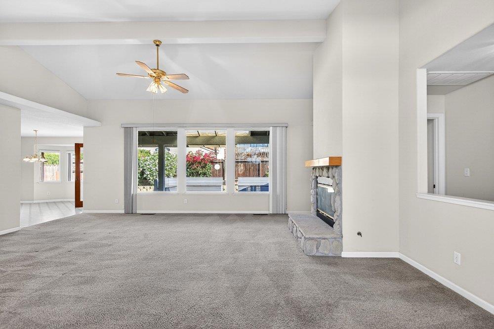 Welcome to this charming 4-bedroom, 2-bathroom home, With a spacious 1,892 square feet of living space on a minimum lot size of 6,098 square feet, this property offers ample room for comfortable living. The kitchen is thoughtfully equipped with ceramic countertops, a dishwasher, garbage disposal, microwave, and an oven range - electric, making it ideal for preparing delightful meals. The home features a cozy carpet flooring throughout and includes a relaxing fireplace, perfect for those cooler evenings. Enjoy the convenience of central AC and central forced air heating, ensuring comfort all year round. The laundry area offers an electricity hookup (220V) and is situated inside for ease of use. The dining options include a breakfast nook and a dining bar, providing versatile spaces for meals and gatherings. Located within the Hollister Elementary School District, this property also includes a 2-car garage. Don't miss the chance to make this versatile and comfortable home your own.
