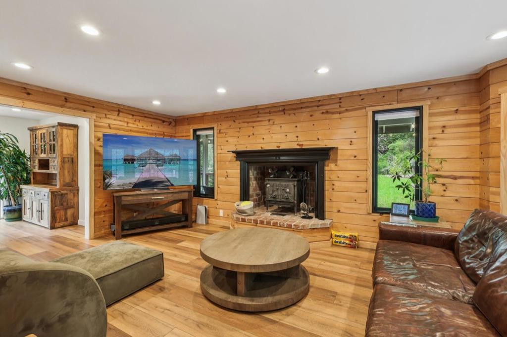 This spacious 4-bedroom, 2.5 bathroom home, fully renovated in 2020, is nestled in the serene surroundings of Boulder Creek. With a generous 2,224 sq ft of living space, this property offers ample room for comfortable living. The home features a formal dining room, perfect for family gatherings and entertaining guests, and a separate family room provides additional living space. The flooring throughout includes carpet and vinyl/linoleum, providing a mix of comfort and durability. The wood-burning stove creates a warm and inviting atmosphere, enhancing the home's charm while serving as a source of heat during cooler months. The property includes a two-car garage, providing convenient parking and additional storage. Situated on a large lot of almost 2 acres, this home provides plenty of outdoor space. Located within the San Lorenzo Valley Unified School District, this home is perfect for families seeking space and tranquility.