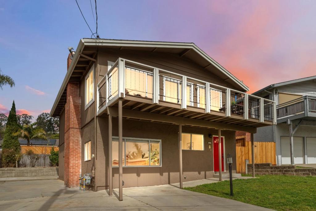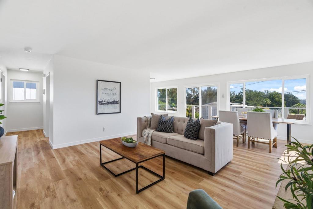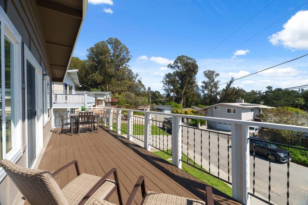 Tucked away near the heart of Soquel with glimpses of the magnificent Pacific Ocean, this 4-bedroom, 2.5-bathroom home has been tastefully updated throughout, including fresh interior and exterior paint. Home chefs will delight in the gourmet kitchen featuring stainless steel appliances and updated hardware perfect for preparing a picnic before heading to New Brighton State Beach, just minutes away. The thoughtfully designed floor plan places the kitchen and living room along the southwest-facing side of the home, flooding both spaces with soft, golden evening light. Just imagine preparing a meal in the refreshed kitchen while guests enjoy a glass of wine on the balcony. Upstairs, the primary suite provides excellent separation from the additional bedrooms located on the lower level. The spacious terraced backyard is adorned with mature landscaping, including fruit-bearing lemon trees and ample patio space ideal for hosting a summer BBQ after a day at the beach. The homes location offers impeccable access to everything the area has to offer: the picturesque Capitola Village, Gayles Bakery, HOME Restaurant in Soquel, world-renowned outdoor recreation in The Forest of Nisene Marks, and convenient commute access to Silicon Valley and beyond.