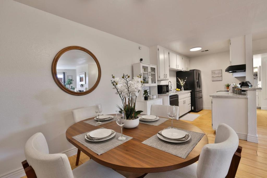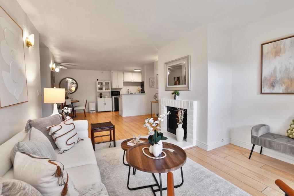 Welcome to this sun-filled ground-floor 1-bedroom, 1-bath condo offering 777 sq ft of comfortable living space in San Jose. With an open layout and abundant natural light, this home is an excellent opportunity for first-time buyers or anyone seeking an affordable entry into the Silicon Valley market. The inviting living room features a cozy fireplace and sliding glass doors that open to a private ground-level patio, perfect for morning coffee or relaxed evening entertaining. The updated kitchen boasts white cabinetry, quartz countertops, and stainless steel appliances, flowing seamlessly into the dining and living areas. The spacious bedroom offers a generous walk-in closet, a true standout for a one-bedroom, while the bathroom features stylish updated finishes. Additional highlights include attractive flooring and central heating and A/C for year-round comfort. Set within a secure gated community with electronic gate access, residents enjoy amenities including a pool, spa, fitness center, landscaped grounds, and on-site laundry. HOA covers water, garbage, and sewer. Just minutes from Regional Medical Center, Penitencia Creek Park, Target, Sprouts, Starbucks, and major commute routes including Highways 680, 101, and Capitol Expressway. FHA and VA financing eligible.