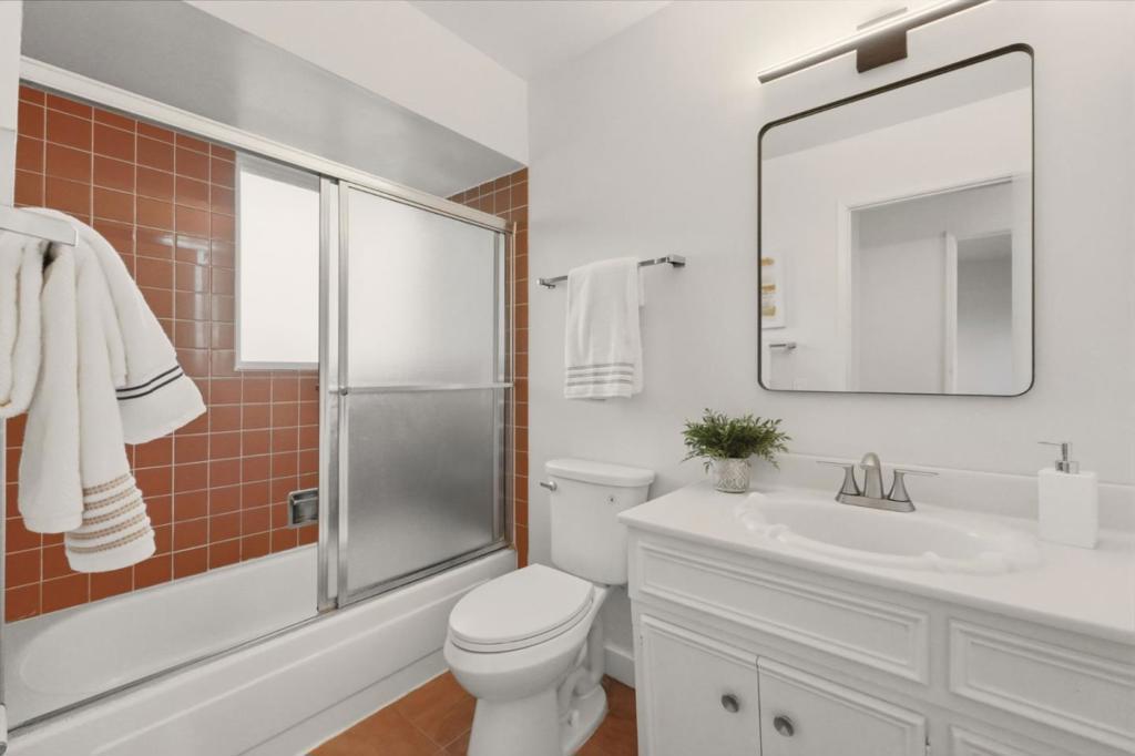 Welcome to this beautifully updated two-story home offering 4 bedrooms and 3 full bathrooms, with a highly desirable first-floor bedroom and full bath, perfect for guests or multi-generational living. With approximately 1,949 sq ft of living space on an expansive nearly 7,400 sq ft lot, the home provides both comfort and room to grow. Recent permitted renovations include a fully remodeled kitchen and a stunning primary bathroom, thoughtfully designed with modern finishes. The home features durable vinyl flooring throughout, creating a clean and cohesive look. A newly installed staircase adds architectural elegance, while skylights fill the interior with abundant natural light. The kitchen is equipped with recently installed SS appliances, quartz counter tops, breakfast bar, ideal for everyday cooking and entertaining. Major systems including heating and cooling have also been upgraded in recent years for improved comfort and efficiency. Step outside to enjoy the charming enclosed front courtyard, beautifully finished with classic brick flooring an inviting and private outdoor space perfect for relaxing or entertaining. Combining tasteful upgrades, functional layout, and a generously sized lot, this home offers a rare opportunity to enjoy comfort, style, and convenience.