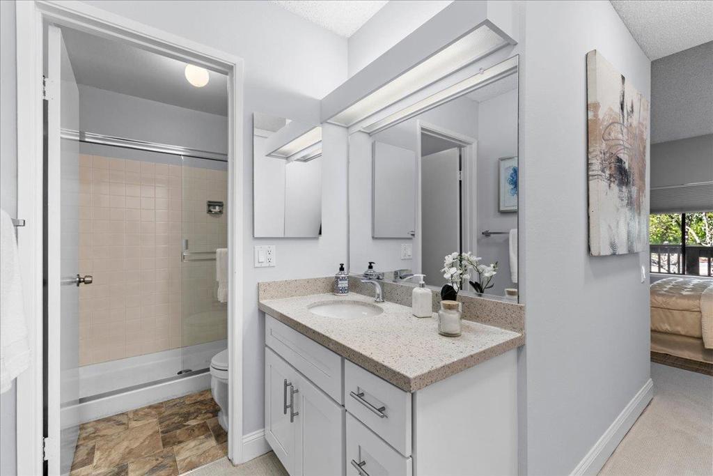 Welcome to a rare tree top-floor luxury condo in San Carlos, CA, offering treetop and hillside views in the prestigious Brittan Heights community. This sun-drenched 2-bedroom, 2-bath residence combines serene, nature-filled surroundings with unbeatable access to downtown San Carlos, Caltrain, Hwy 280, and Silicon Valley. This home features a formal entry, vaulted ceilings, new LVT and carpet flooring, and a cozy fireplace within an open living and dining layout that flows to a spacious private deck immersed in greenery. An updated modern kitchen supports both everyday living and entertaining, while the spacious primary suite includes an en-suite bathroom and generous closet space. Additional conveniences include a separate laundry room and a conveniently located deeded parking space with storage. Community amenities rival a resort, with 3 swimming pools,2 tennis courts, a clubhouse, scenic walking trails, a playground, and open green spaces. On the San Francisco Peninsula, San Carlos is loved for its vibrant downtown, strong schools, and nearby Edgewood Park scenic hiking trails and open spaces. Caltrain and commuting are minutes away. This move-in ready San Carlos home offers the lifestyle today's buyers are searching for.