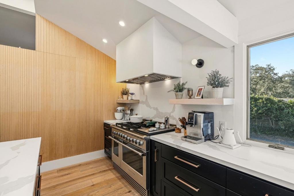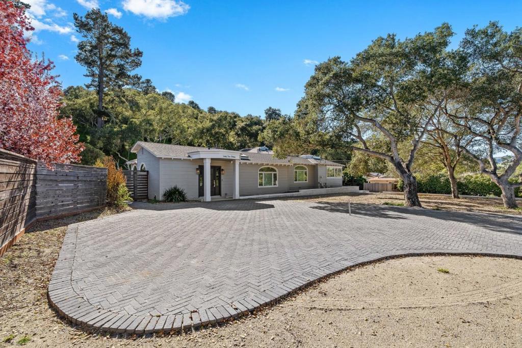Welcome to Paseo Hermoso in the highly desirable San Benancio community along the Highway 68 corridor. Known for its sunshine, great weather, and family friendly atmosphere with access to highly regarded schools, this location is one of the most sought after areas in the valley. This sleek contemporary home sits among beautiful oak studded surroundings and blends modern design with comfortable living. The light filled kitchen features chef grade appliances, mountain views, and two oversized islands flowing into a spacious dining area ideal for entertaining. The main level offers a ground floor bedroom and full bath along with a private tucked away office or gym space. Upstairs, the primary suite includes two walk in closets and a luxurious bath with soaking tub and walk in shower. The backyard offers a large sprawling lawn with space for play and entertaining plus bocce, horseshoes, and a built in trampoline. A circular driveway paired with a second driveway provides abundant parking and creates a striking first impression