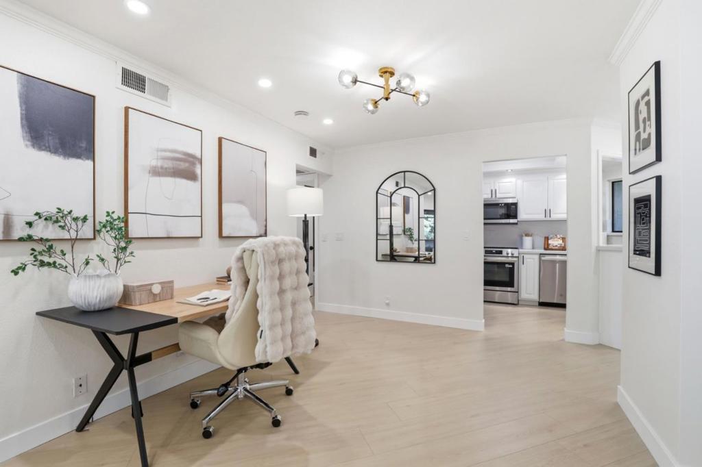 Beautifully remodeled Cambrian home in a peaceful park-like community. The open chefs kitchen features quartz countertops and upgraded appliances. The spacious living area opens to a private balcony overlooking the tranquil setting, while the dining area offers access to a second private balcony. Gleaming floors add warmth and style throughout. Both bedrooms are spacious and offer serene views. The primary suite features its own balcony, walk-in closet, and en-suite bathroom. Tastefully updated bathrooms, double-pane windows, recessed lighting, and paneled doors complete the homes stylish interior. Additional highlights include inside laundry, two balcony storage closets, one covered carport space, and one additional open parking space. Ideally located in a charming Cambrian neighborhood with easy access to expressways, Highway 85, and Highway 17/880, making commuting a breeze. Award-winning schools nearby include Sartorette Elementary, Price Charter Middle, and Branham High, with Steindorf Elementary available as a magnet school. Buyer to verify schools.