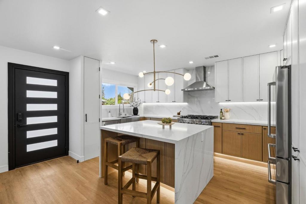This beautifully remodeled Cambrian residence has been thoughtfully re-built with attention to detail. The open concept floor-plan offers 3 beds/2 baths, highlighted by a chef's kitchen with mini shaker cabinetry, Z-Line appliances, a wine cooler, and a waterfall island for casual dining. Major upgrades provide lasting peace of mind, including a new composite roof, new electrical, plumbing, and HVAC systems. Cat6 wiring runs throughout, and the home is hardwired for an exterior security camera system. The backyard is a true entertainers dream complete with a sparkling pool, multiple lounge areas, covered gazebo, and a built-in BBQ with griddle. Whether hosting summer gatherings or enjoying quiet evenings at home, the outdoor spaces provide versatility. The primary suite offers a private retreat with direct access to the backyard, creating a seamless extension of indoor/outdoor living. Both bathrooms evoke a spa-like experience, appointed with Porcelanosa tile, illuminated niches, and smart bidet toilets. The garage is EV-ready with 220V hookup and an upgraded electrical panel for future solar integration. A modern steel-and-glass garage door leans into the homes contemporary curb appeal. Access to top rated schools including Oster Elementary, Dartmouth Middle, and Branham High.