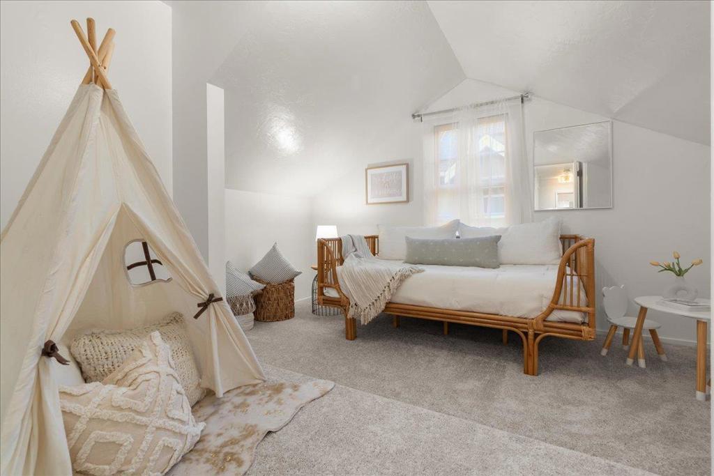 Located on one of Willow Glens' most sought-after tree-lined streets, 4 bedrooms with a bonus room/den, this desirable floor plan includes 2 ground floor bedrooms, perfect for in-laws/home office, 3 full bathrooms, 2,242 sq ft, plus a 525 sq.ft. detached 2-car garage with storage room set on an expansive 7,380 sq.ft. lot. Thoughtfully updated with extensive 2026 upgrades, the home features refinished hardwood flooring, new interior and exterior paint, designer lighting, new carpeting, and elegant finishes throughout.The modernized kitchen showcases new cabinetry, sink, and appliances including refrigerator, microwave, and stove/oven, along with updated kitchen and laundry flooring and new washer and dryer.The luxurious primary suite has been reimagined with a lifted ceiling, expanded closet, and a spa-inspired bathroom featuring a new soaking tub, shower, smart toilet, and designer vanity.Additional upgrades:renovated bathrooms with new vanities and flooring, new rods and curtains, a new upstairs AC unit and epoxy garage flooring.Smart home features include a Ring doorbell, Honeywell thermostat and smart lock.Refreshed landscaping with new lawn, sprinkler system, and new outdoor lights. Stroll to Downtown Willow Glen, walk to schools and parks &near the Willow Glen farmers market