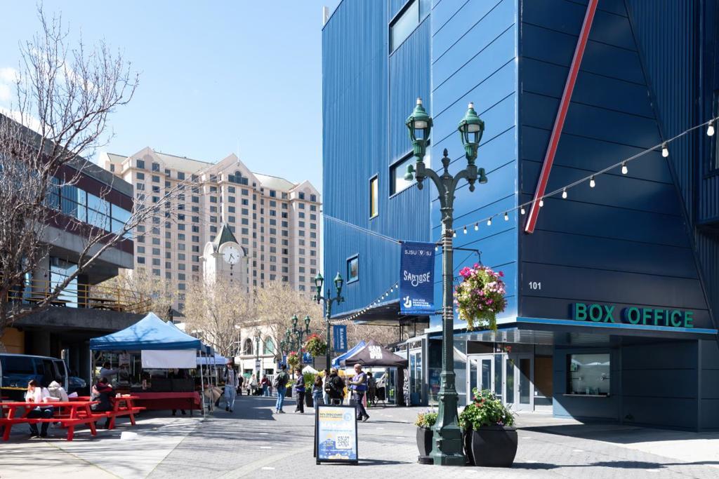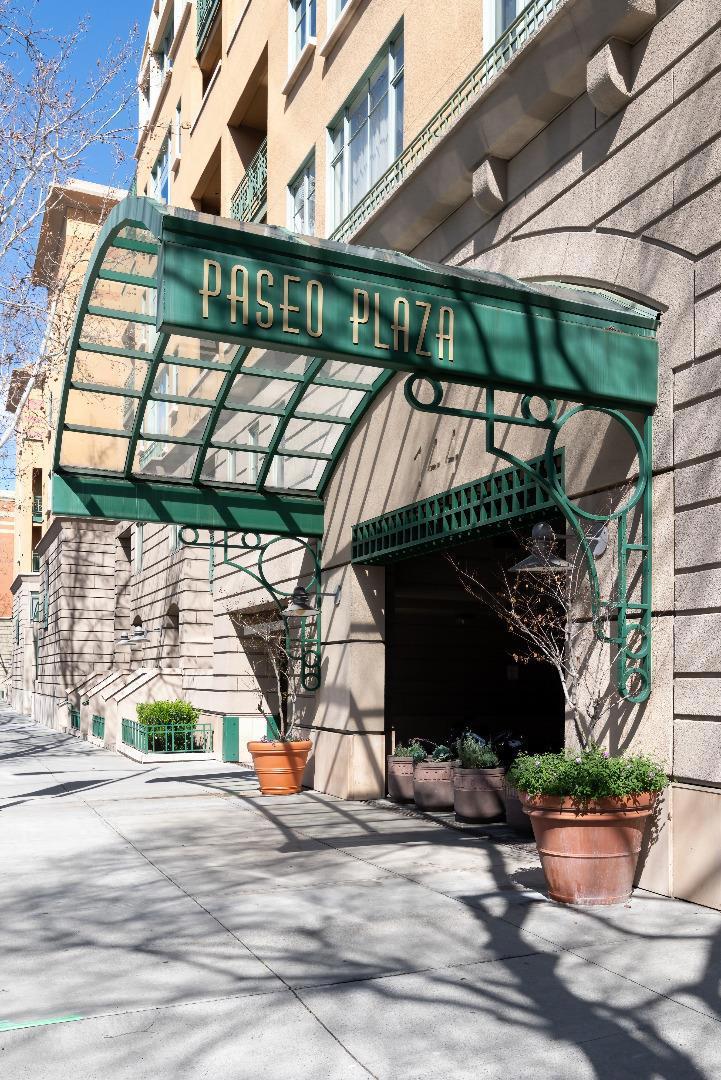 This remarkable ground floor, 2-story home is ready for you to move right in! Situated in the desirable, gated and secure Paseo Plaza community, it is your city retreat in vibrant downtown San Jose. The open downstairs floor plan features well appointed dining and living room areas and a brightly lit chefs kitchen with new G.E. stainless steel appliances. The entire unit has new environmentally friendly engineered floors and is professionally painted. New energy efficient light fixtures pour out abundant light. On the 2nd floor are two en-suite primary bedrooms with large walk-in closets. Laundry room. The sparkling bathrooms are upgraded with new Kohler toilets and Moen faucets. Keeping it comfortable is the new central HVAC unit installed in 2024. The secured underground garage has 2 assigned, side-by-side parking spots. The common areas feature a lovely pool and spa; well equipped fitness center; and a social room that can be reserved. Building managers have on-site offices open weekdays. Central location means easy car access to highways 280, 87 and 101, with SJ Airport and Diridon station nearby. Downtown is only steps away from your front door. Enjoy great dining, entertainment and night-life options as well as theaters, museums, pedestrian SJ State University & much more.