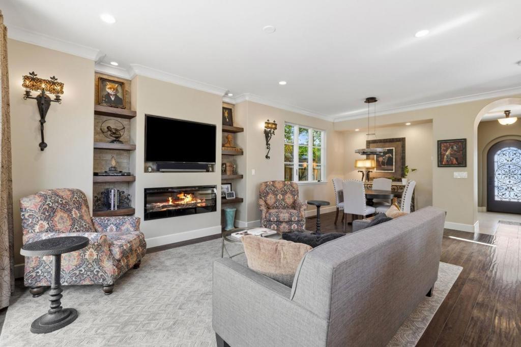 Located in downtown Willow Glen and featured on the "Willow Glen Lifestyles Home Tour," this custom Spanish-style home, built in 2016, is steps away from restaurants, coffee shops, and stores. Although designed as a three-bedroom home, the owners opted for an open loft/art studio (loft can easily be converted into a 3rd bedroom). This home was carefully designed down to the last detail and features custom walnut cabinetry in the kitchen and both bathrooms, nine-foot ceilings downstairs, 100-year-old wall sconces, and custom walnut bookshelves with stone backing. Spacious kitchen with lots of counter space and extensive storage, featuring cabinets that reach the ceiling, copper sink and Bosch appliances. The generous primary bedroom includes a lighted tray ceiling, reading lights over the bed, and large walk in closet. Primary bath features an 8' vanity, double sinks, linen cabinet, separate shower and free-standing soaking tub. Beautifully landscaped with waterwise plants in front and back. Enchanting rear garden and 1.5 detached garage. This home is truly one of a kind. Easy access to freeways and public transportation.