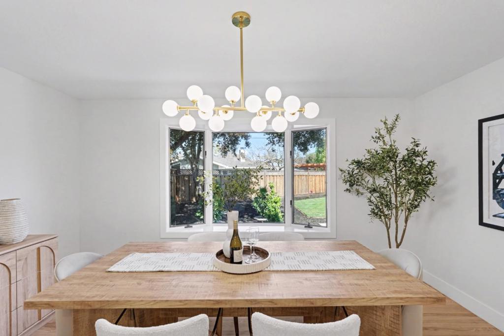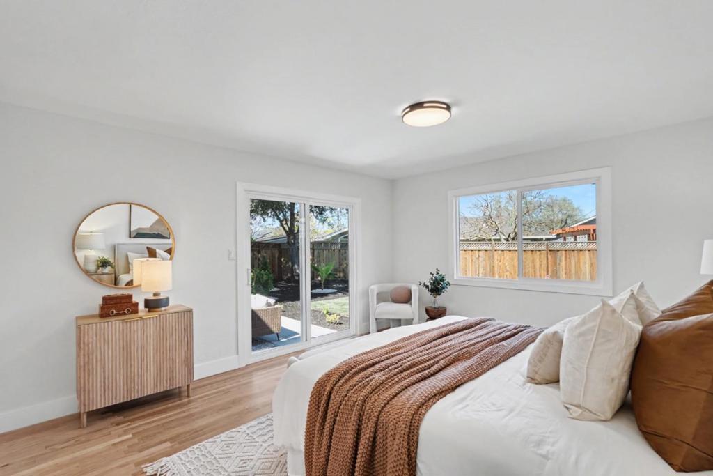 Stunning & fully renovated home tucked away on a quiet street in the highly sought-after Birdland neighborhood of Sunnyvale. Terrific & open concept floor plan ideal for entertaining which features an impressive great room, separate family room, & (3) ground level bedrooms including the primary suite. Chef's kitchen boasting modern cabinetry, new countertops & backsplash, gas range with chimney exhaust, & an oversized island with seating for (3) & pendant lights. All bathrooms have been tastefully remodeled with contemporary finishes throughout. Primary suite includes views of the beautifully landscaped backyard, (2) closets, huge walk-in shower with separate soaking tub, & a dual vanity. Other features include hardwood floors, new roof & gutters, bay windows & sliding glass door providing lots of natural light, 200-amp service panel, copper plumbing, recessed lights & new light fixtures, new garage door, new interior and exterior paint, double pane windows, & much more. Beautifully & redesigned landscaping featuring a large patio for outdoor entertaining, new lawn, mature plants and trees, and automatic sprinklers and drip irrigation! Prime Sunnyvale location within close proximity to Laurelwood elementary, Peterson middle, Raynor Park, Apple Park, & many high-tech companies.