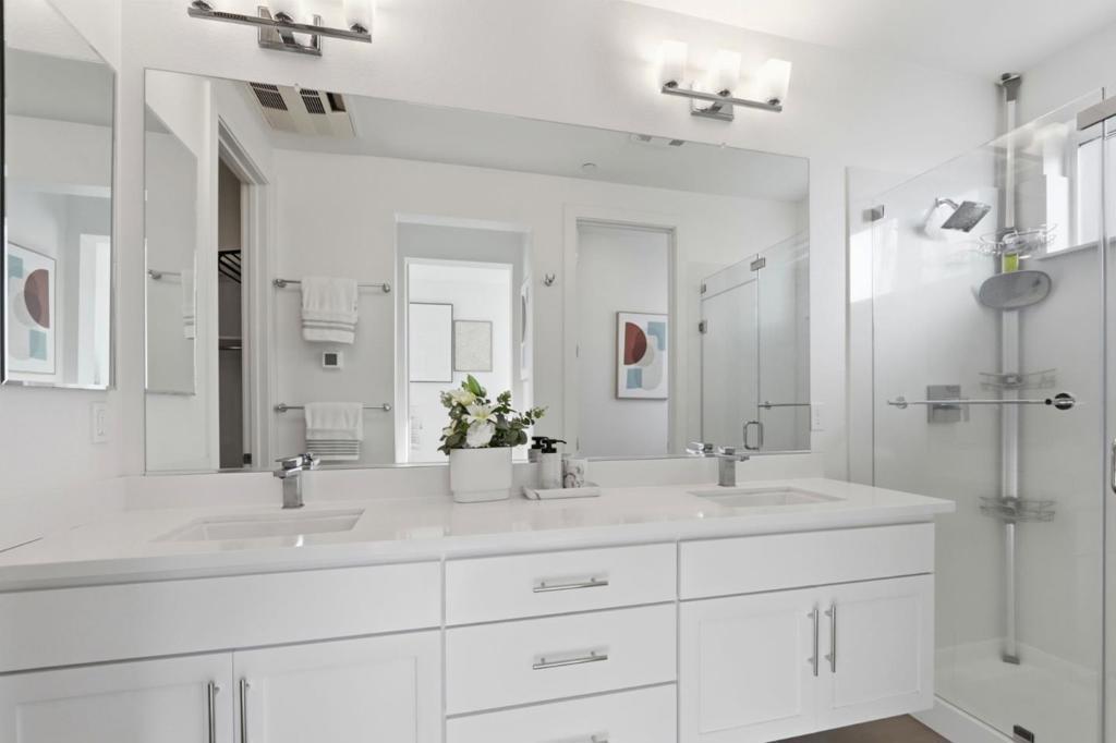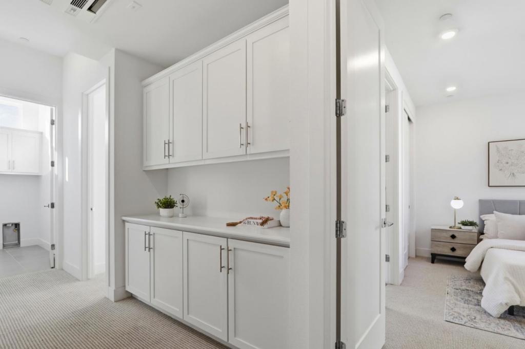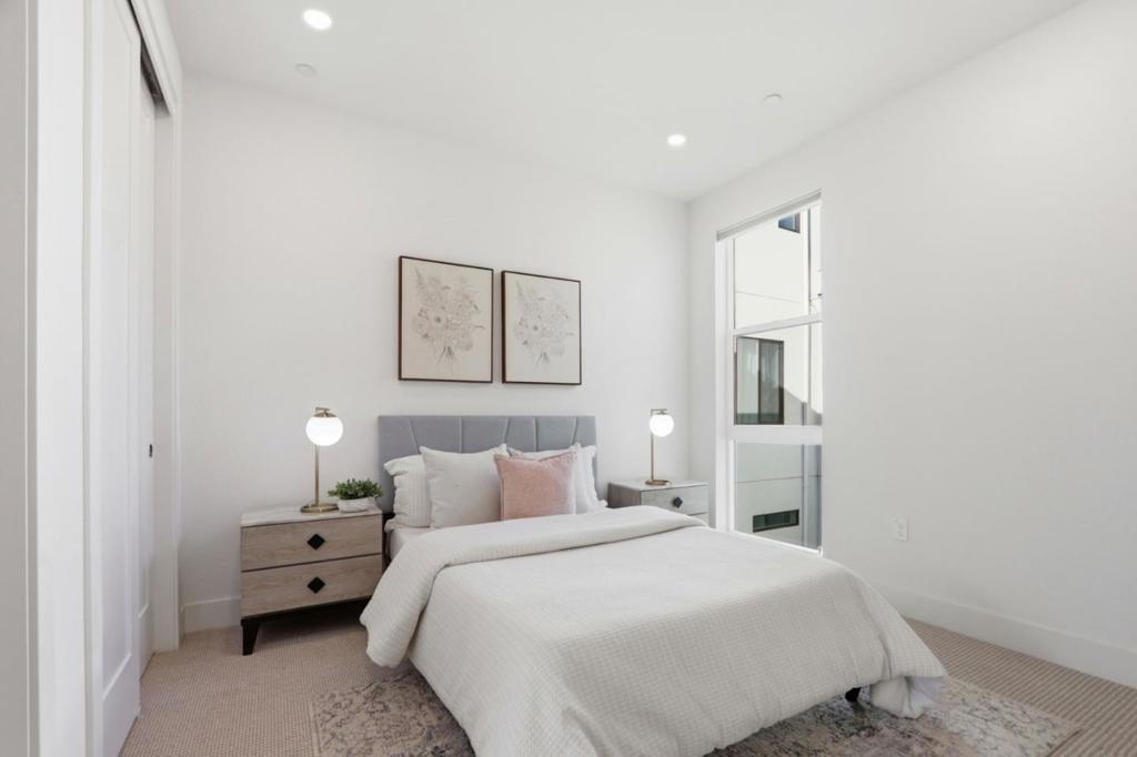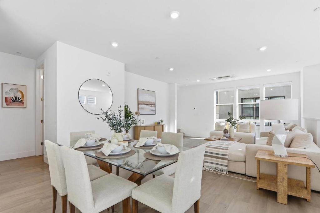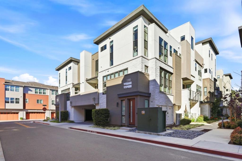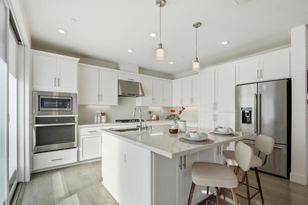 Must-see! Rarely available 3-bedroom plus den townhome in the Nuevo community, built in 2020 and offering 1,924 sq. ft. of modern living space. This stylish home features three bedrooms, a versatile den, and 2.5 baths, thoughtfully designed for both elegance and everyday functionality. The chefs kitchen shines with stainless steel appliances, quartz countertops, and shaker-style soft-close cabinetry. The spacious primary suite boasts an impressive 11-foot ceiling, a walk-in closet, and a luxurious en-suite bathroom with dual vanities and a walk-in shower. Wide-plank engineered wood flooring flows throughout, complemented by smart home features including recessed lighting. The flexible den is perfect for a home office or guest room. Residents enjoy resort-style amenities such as a playground, basketball court, dog park, and beautifully landscaped common areas. Ideally located within walking distance to Costco and Whole Foods, plus dining and entertainment at Santa Clara Square and downtown Sunnyvale. Just minutes from NVIDIA, Apple, Amazon, LinkedIn, and other major tech campuses, with easy access to major highways and the Lawrence Caltrain Station. Dont miss this rare opportunity to own a modern, low-maintenance home in the heart of Silicon Valley!