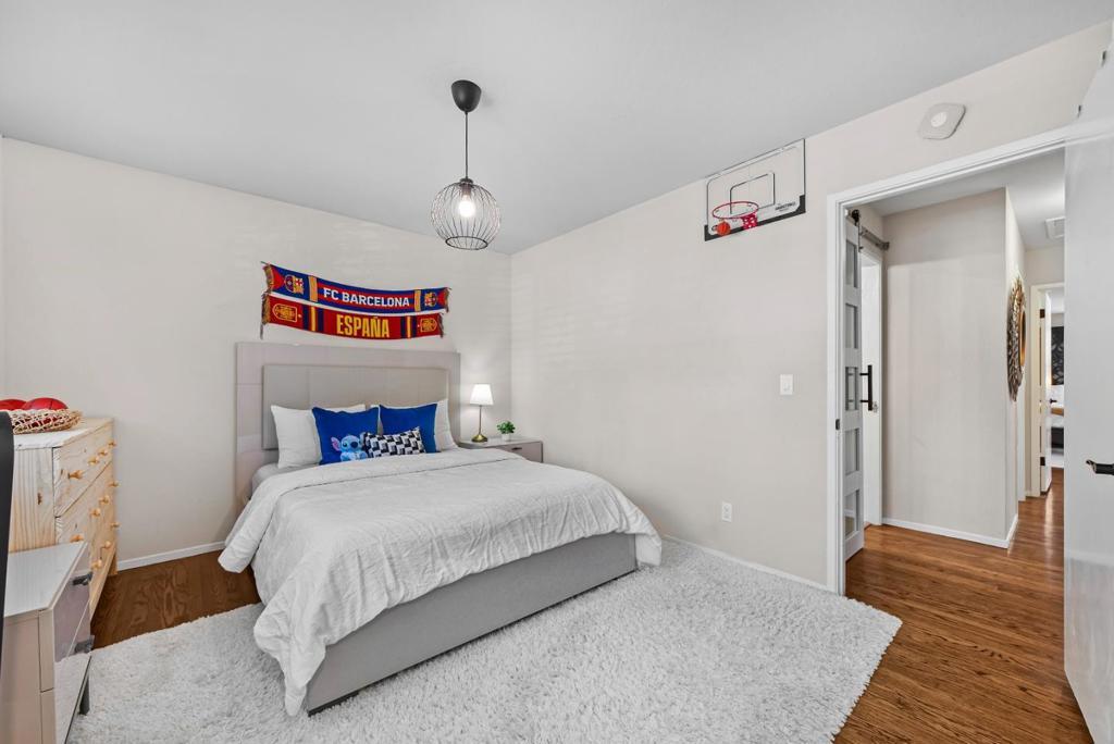 Stylishly renovated Sunnyvale single-family home combining classic architecture with modern design. Light-filled interiors feature oversized dual-pane windows, fresh interior paint (2023), hardwood flooring, custom shutters, and LED recessed lighting. Elegant living room highlighted by an Italian-tiled fireplace wall. The gourmet kitchen offers professional-grade stainless steel appliances, quartz countertops, custom cabinetry, designer backsplash, and a spacious pantry. Open kitchen, dining, and family room layout enhanced by an Italian porcelain tile media wall and motorized sliding door curtains, creating an ideal space for everyday living and entertaining. Spacious primary suite with dual closets, built-in workspace, and spa-like bath featuring radiant heated floors, Jacuzzi tub, and smart bidet toilet. Bright guest bedrooms and updated guest bath with full tile wall and tub/shower combo. Private backyard with covered gazebo and seating area perfect for outdoor enjoyment. Finished garage with storage, laundry area, sink, and new garage door. Conveniently located near parks, shopping, Caltrain, major tech campuses, and Homestead High School!